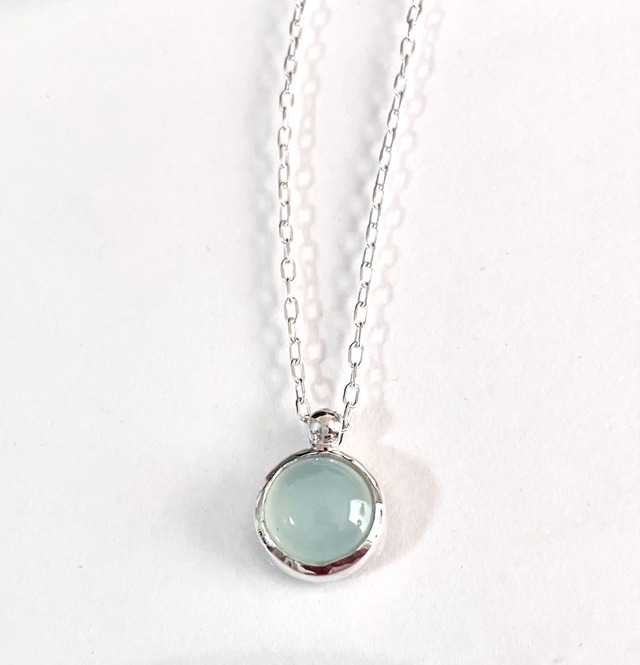 シーブルカルセドニーを使用したエレガントなペンダントです。 透き通るような美しい淡いグリーンがかったブルーが特徴的なシーブルカルセドニーは、まるで深い海の様な幻想的な色合いで、胸元に爽やかさを添えてくれます。 ペンダントのデザインは、この美しい石をしっかりと引き立てるシンプルなスタイルに仕上げました。カジュアルな日常使いはもちろん、特別なシーンにもぴったりなアイテムです。 ☆こちらのペンダントは一点物になります。 【天然石につきまして】 天然石の性質上、色ムラ、インクルージョン (内包物)などがございます。 自然の産物ならではの素材の魅力と ご理解くだいますようよろしくお願いいたします。 ~~~~~~~~~~~~~~~~~~~~~~~~~~~~~ 【サイズ】 16.5mm (バチカントップまで) 【使用金属】SILVER925 【使用石】シーブルカルセドニー(10×10×5.2mm)4.46ct 【チェーンサイズ】SILVER925(45cm)
