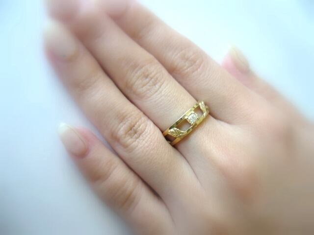 圧迫感の無い着け心地が魅力のオシャレなダイヤの指輪です。