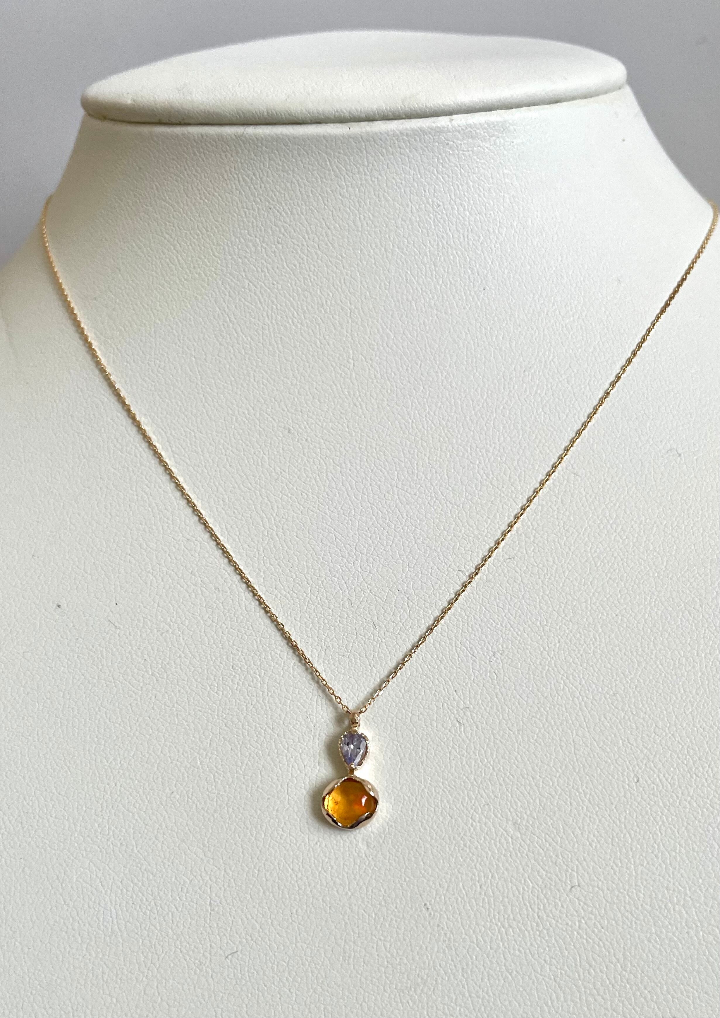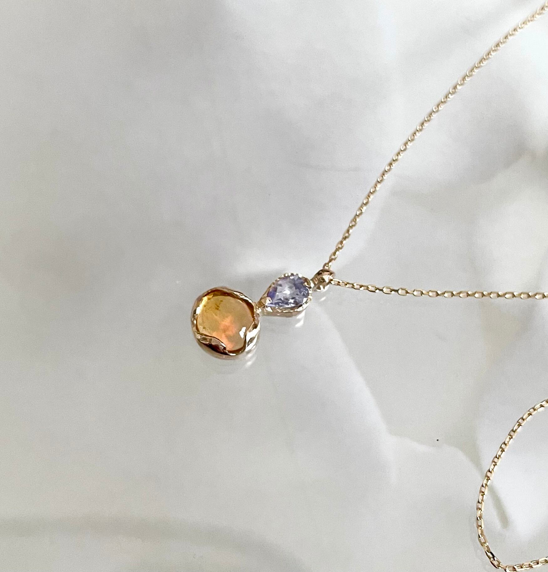 美しい色彩を持つ天然オパールを使用し、深い青紫色のアイオライトをアクセントに加えています。