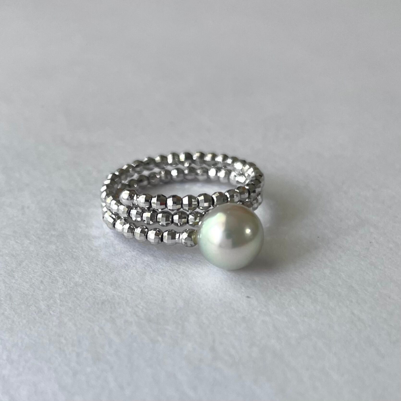 真珠の美しさをより引き立てたデザインで、フォーマルはもちろん、カジュアルにも合わせて頂けるおしゃれな真珠の指輪です。