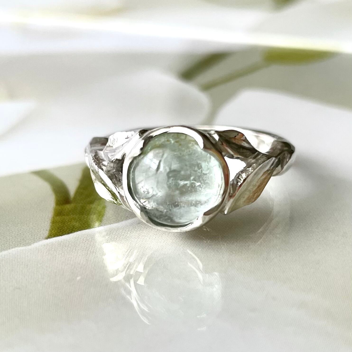 アクアマリンを使ったボタニカルリングです。