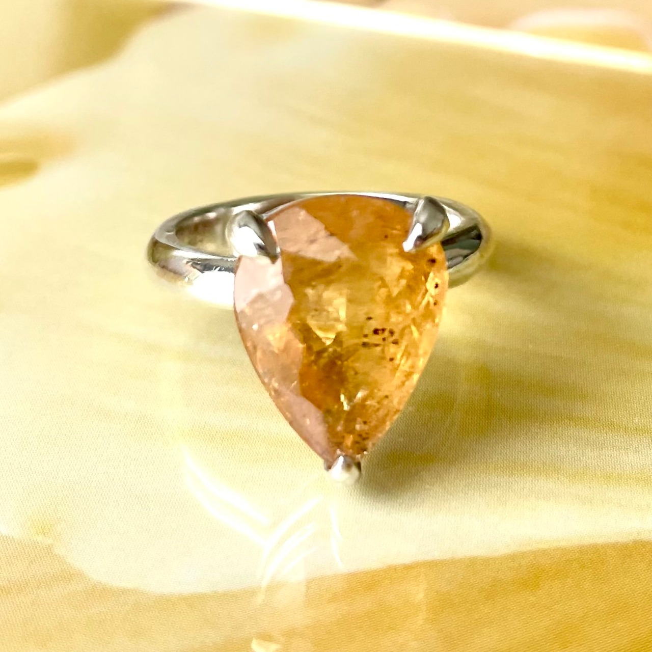 ブラジル産のインペリアルトパーズを使用したこのリングは、優美な金色のトーンと華やかなオレンジの色合いが魅力です。