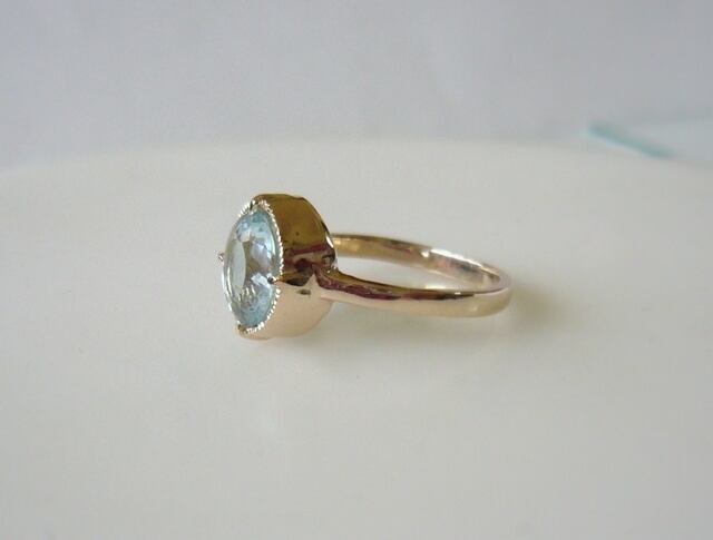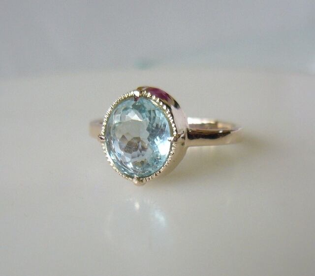 オーバルファセットカットの天然アクアマリンを使った指輪です。