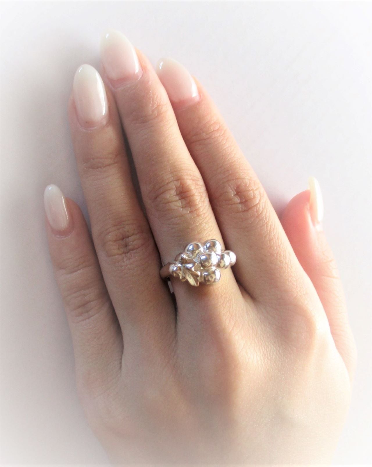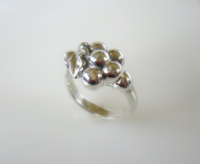 豊かな実をたくわえた葡萄の房を指輪にしてみました。
