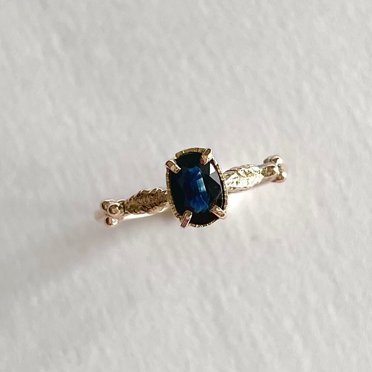 石枠に細かな刻みを入れ、リーフと木ノ実でボタニカルかつアンティークな雰囲気のデザインで仕上げました。