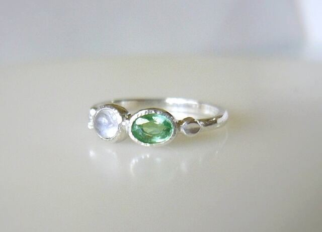 タンザニア産天然グリーントルマリンとムーンストーンを使った指輪です。