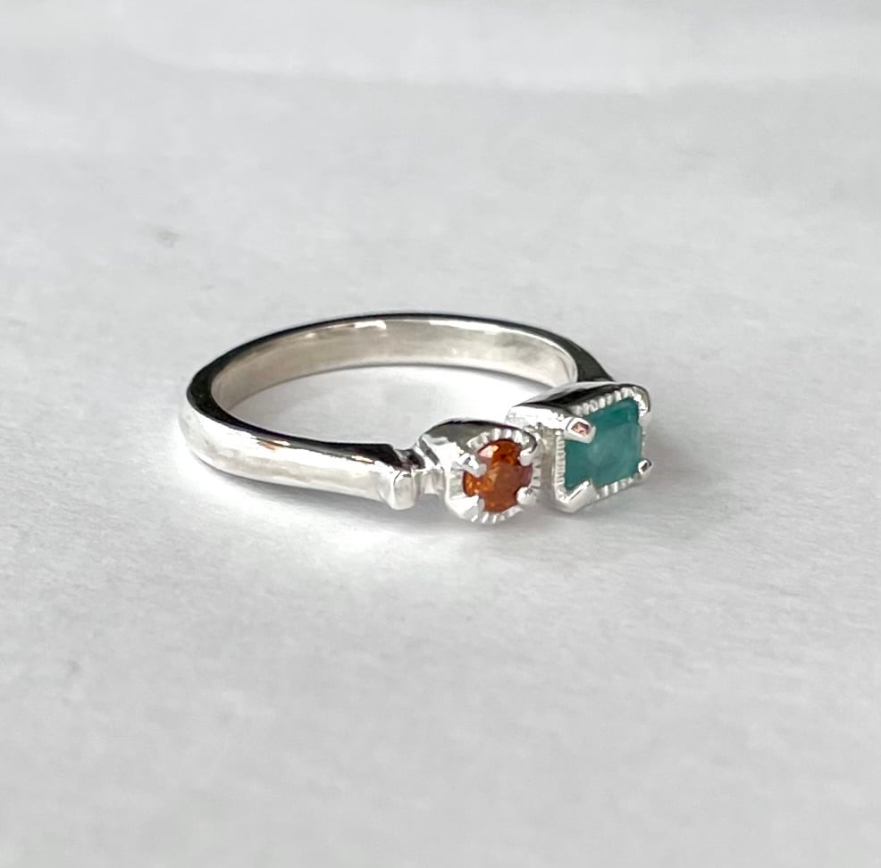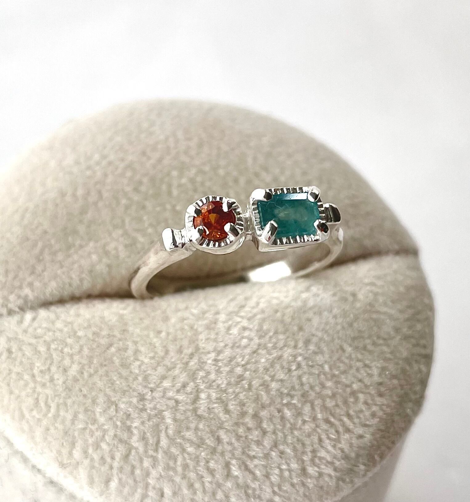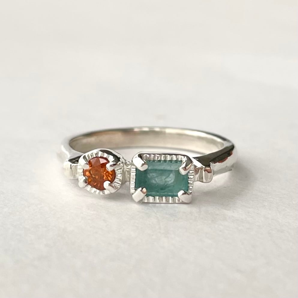 アクアマリンとスペッサータイトガーネットを使ったSILVER925の指輪です。