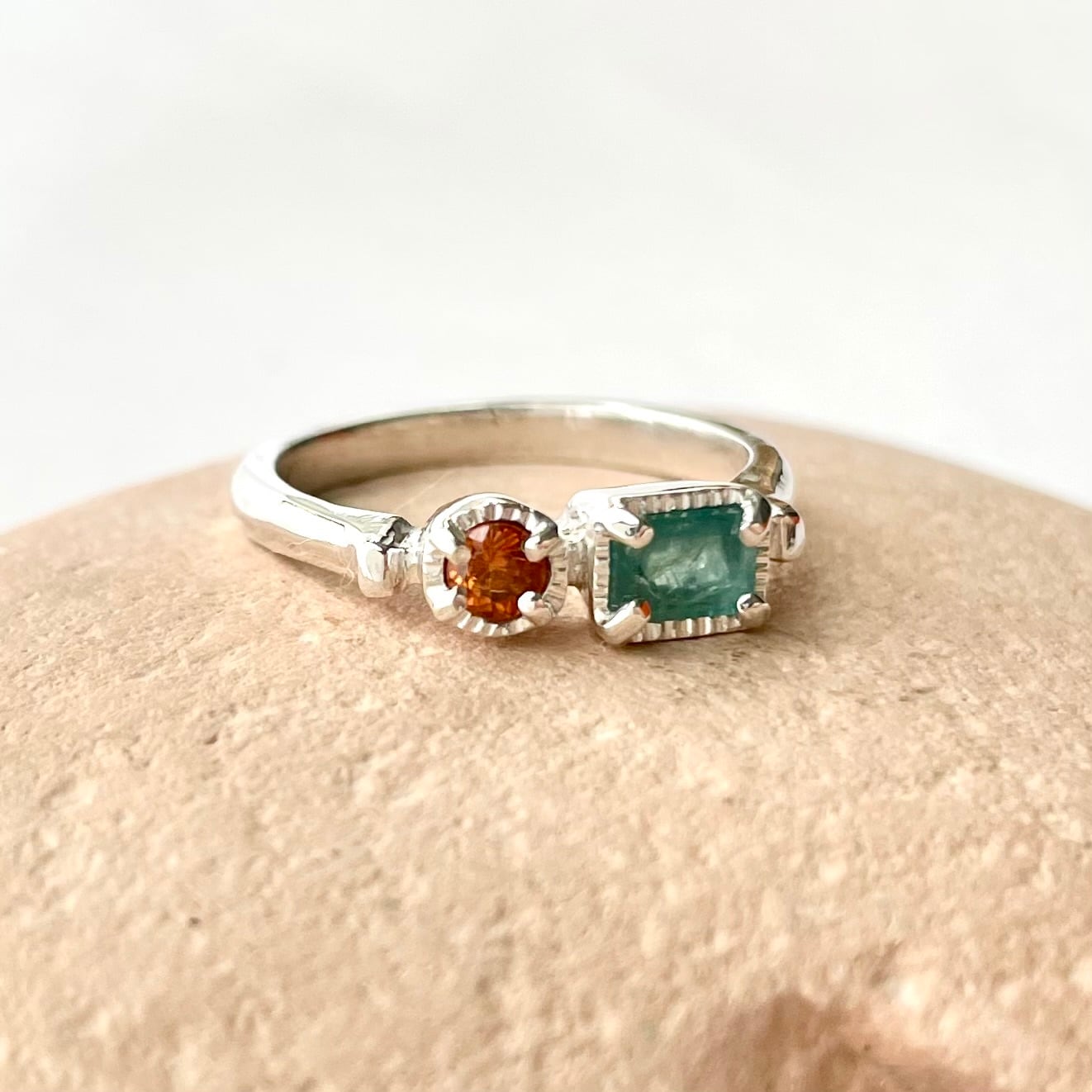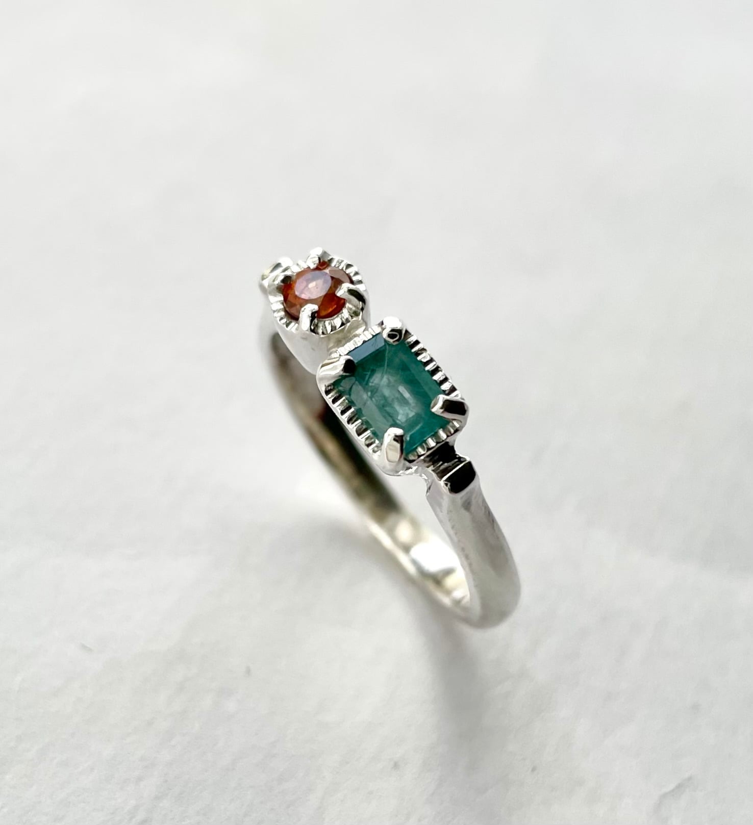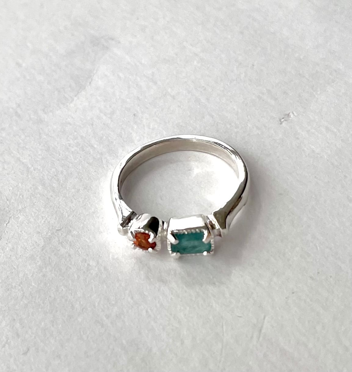 アクアマリンとスペッサータイトガーネットを使ったSILVER925の指輪です。