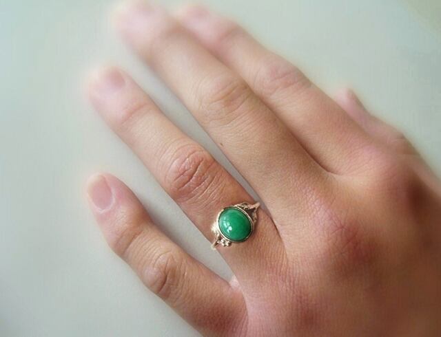 落ち着いた自然の美しさを持った天然エメラルドの指輪です。