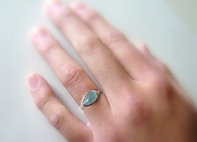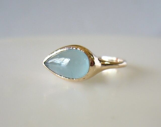 すっきりとした中にさりげない個性が光るこのアクアマリンの指輪は