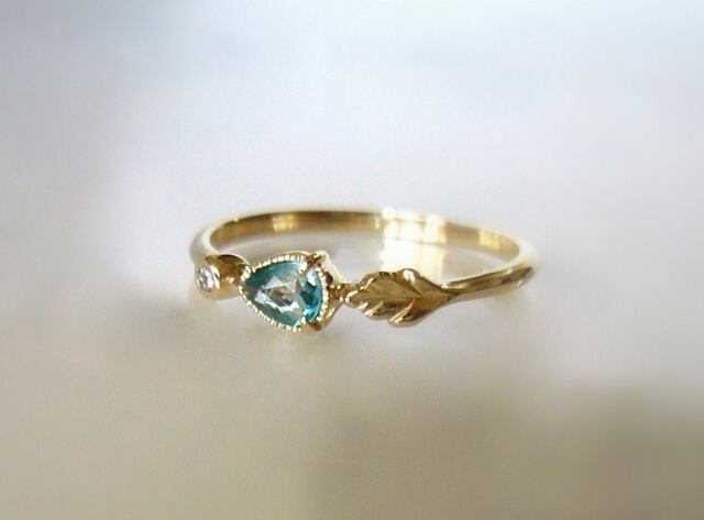 マダガスカル産天然グランディディエライトを使ったK10の指輪です。