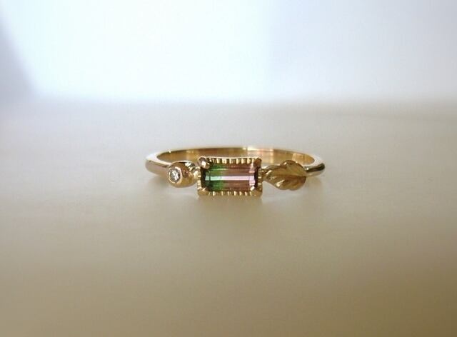 それぞれ輝きのあるメレダイヤと木の葉を置いて