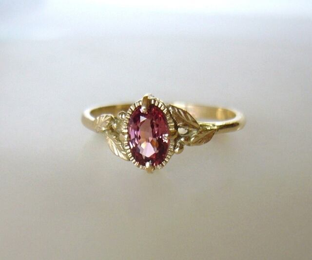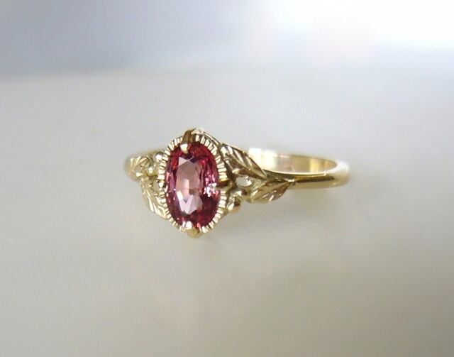 マラヤガーネットのK14のボタニカルリング