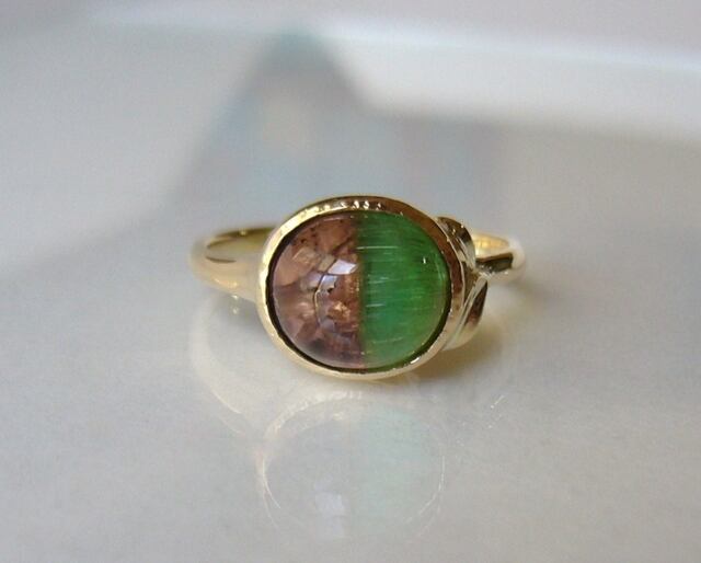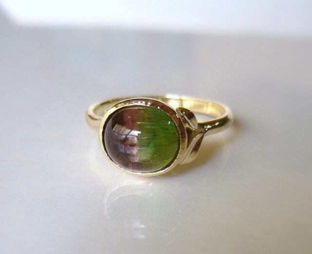 天然非加熱ブラジル産バイカラートルマリンはを使った指輪です。
