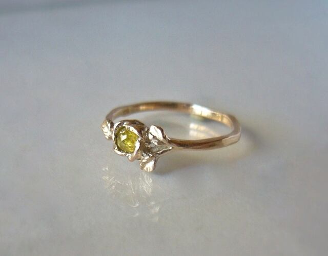 このナチュラルイエローのローズカットダイヤは透明感があり、
