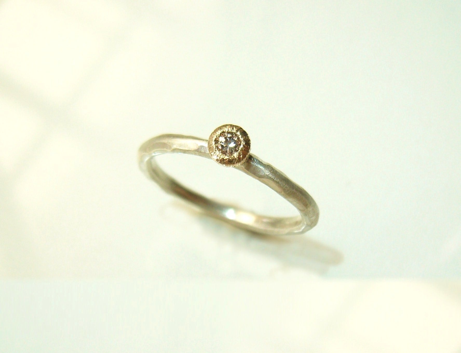 輝きを持ったブラウンのダイアを一粒留めたシンプルなリングです。