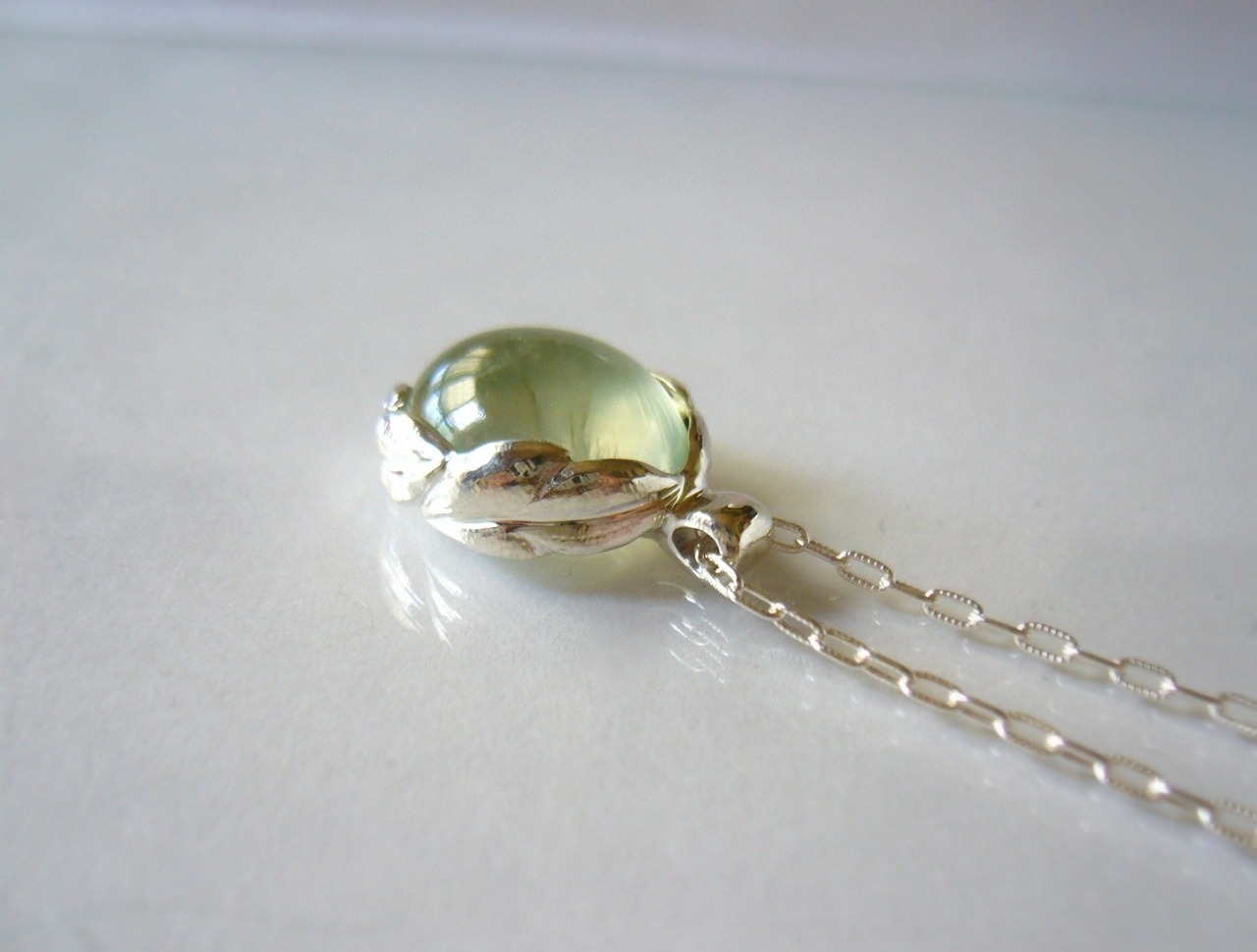 マリ産天然非加熱プレナイトを使ったペンダントです。