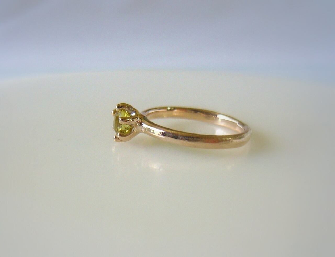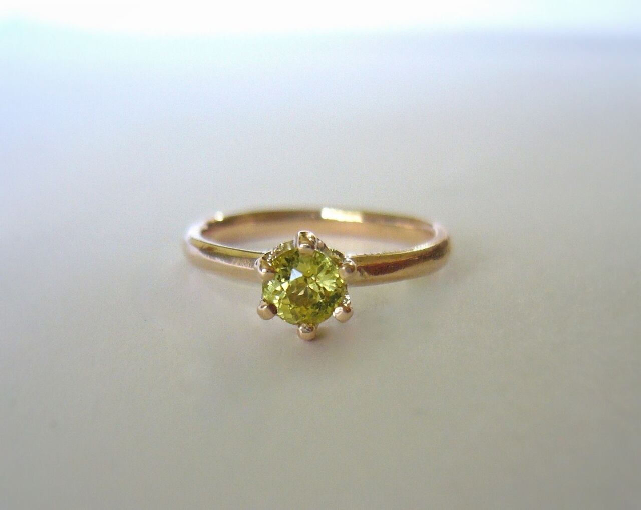 このガーネットはイエローを帯びた落ち着いたグリーンが