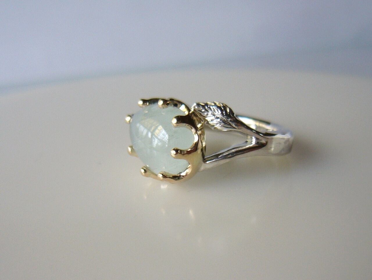 ホワイトブルーアクアマリンのミルククラウンの指輪