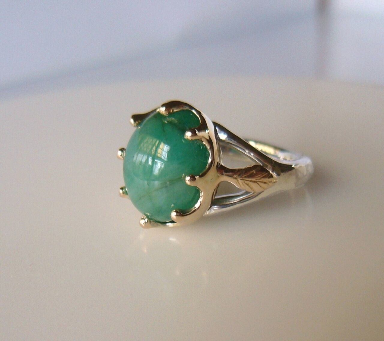 天然エメラルドのミルククラウンの指輪(Silver & K10)