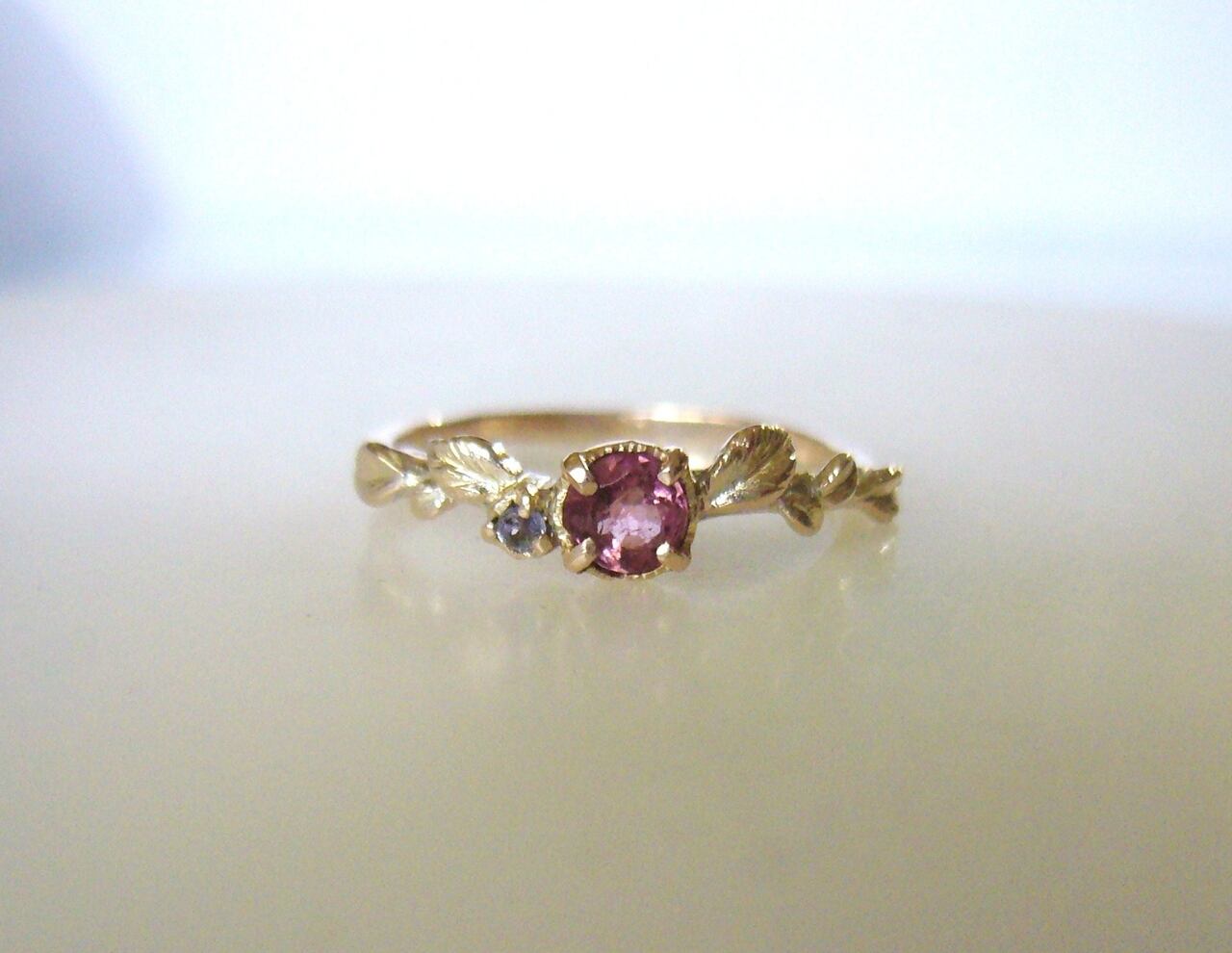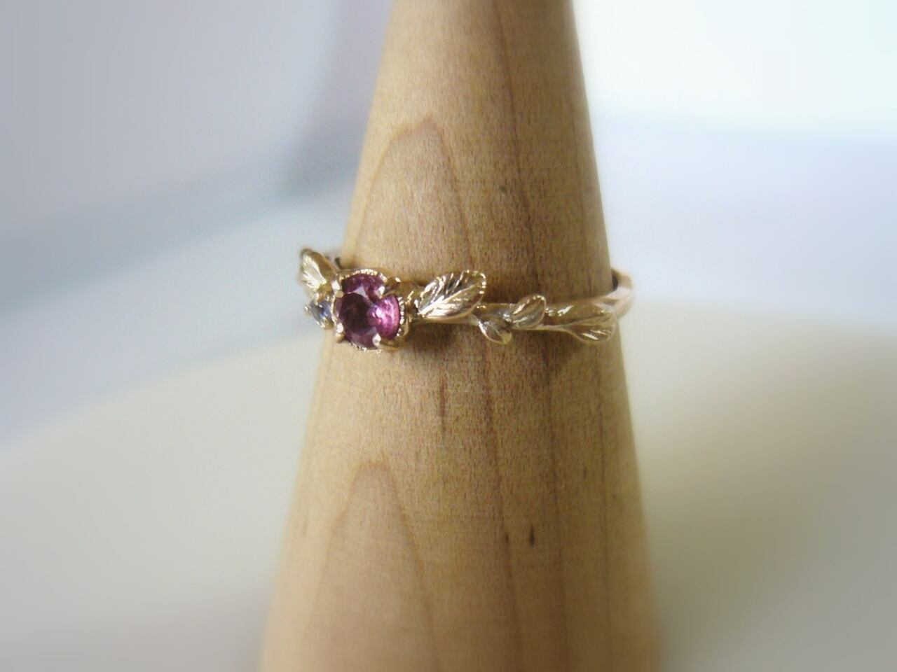 ピンクトルマリンとタンザナイトの植物の指輪(K10)