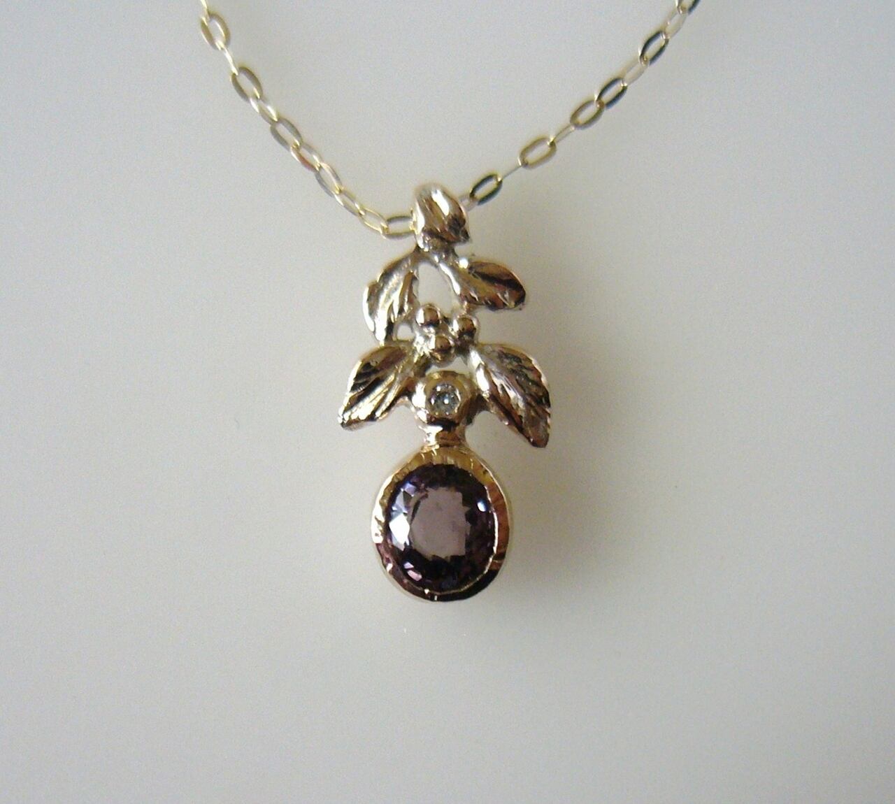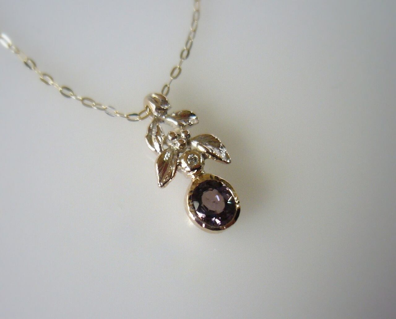 ヴァイオレットスピネルとダイヤのボタニカルペンダント(K10)