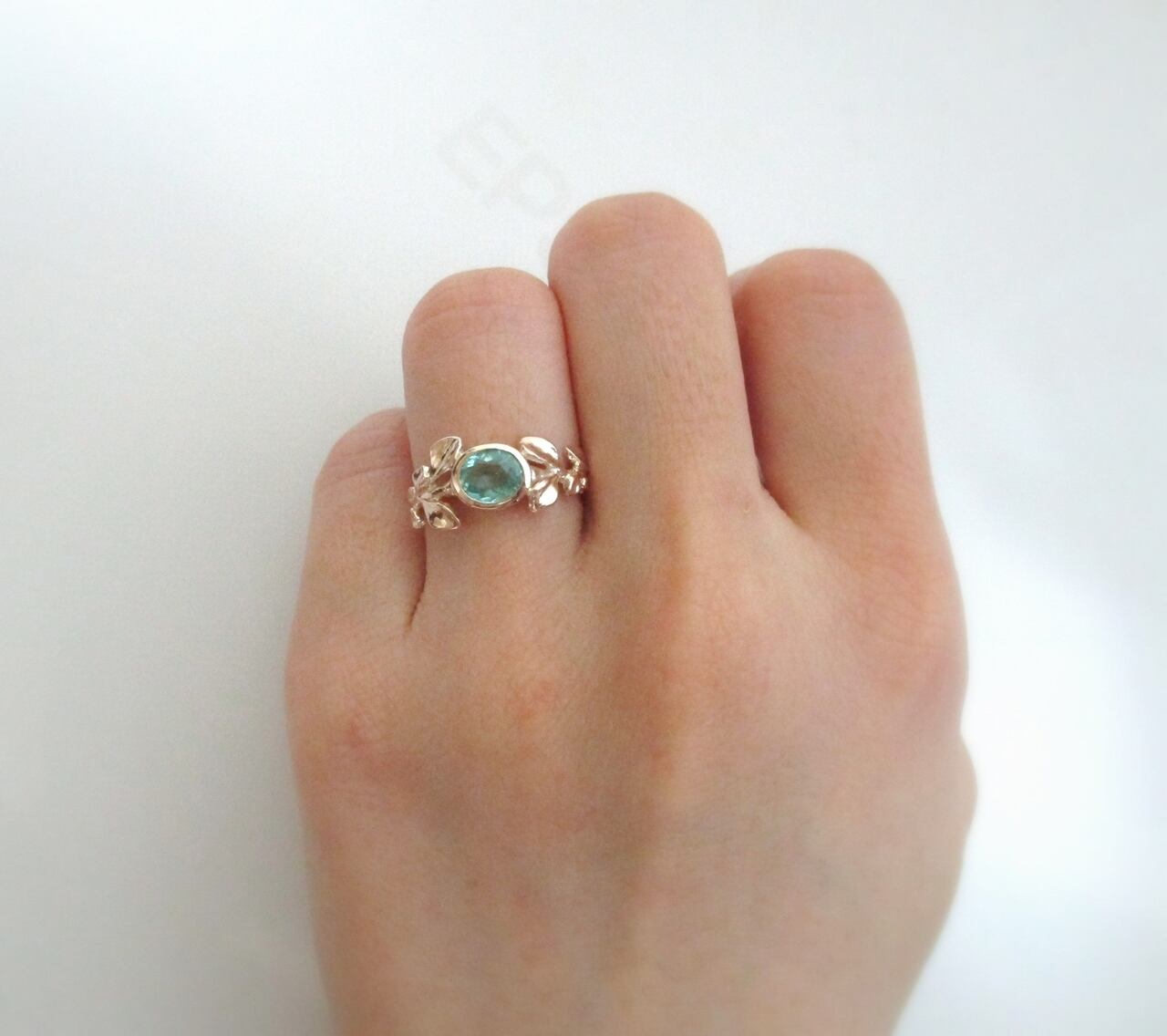パライバブルーアパタイトとリーフの指輪 (K10)