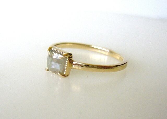 細かなカットが魅力のこの四角いローズカットダイヤは