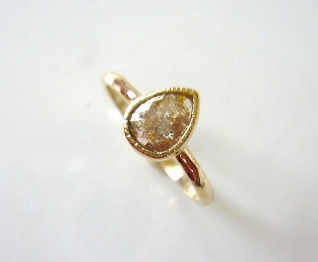 ペアシェイプのナチュラルダイアモンドを使ったK14の指輪です。