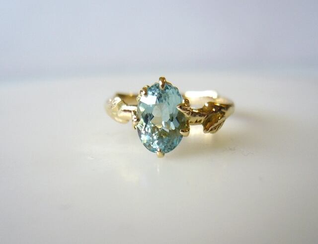 ☆アクアマリンでK18で「シトリンと植物の指輪」のデザインで製作致します。