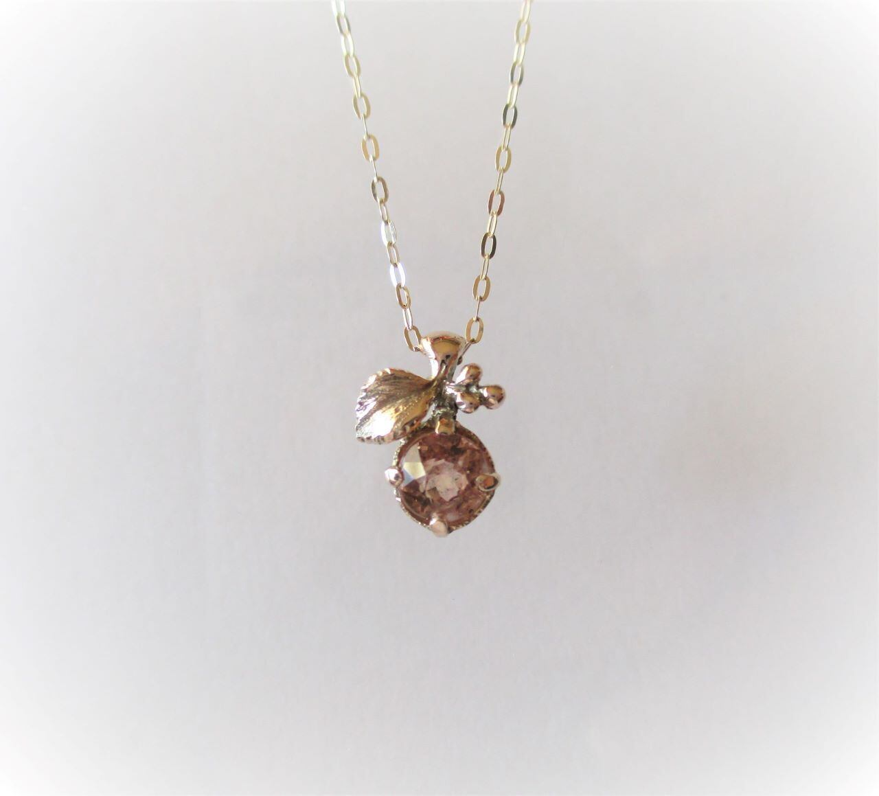 とても繊細に作られたK10のペンダントフレームは細かな植物の造形にアンティークの趣きをプラスしてナチュラルな石の美しさをより引き立てるデザインにしました。