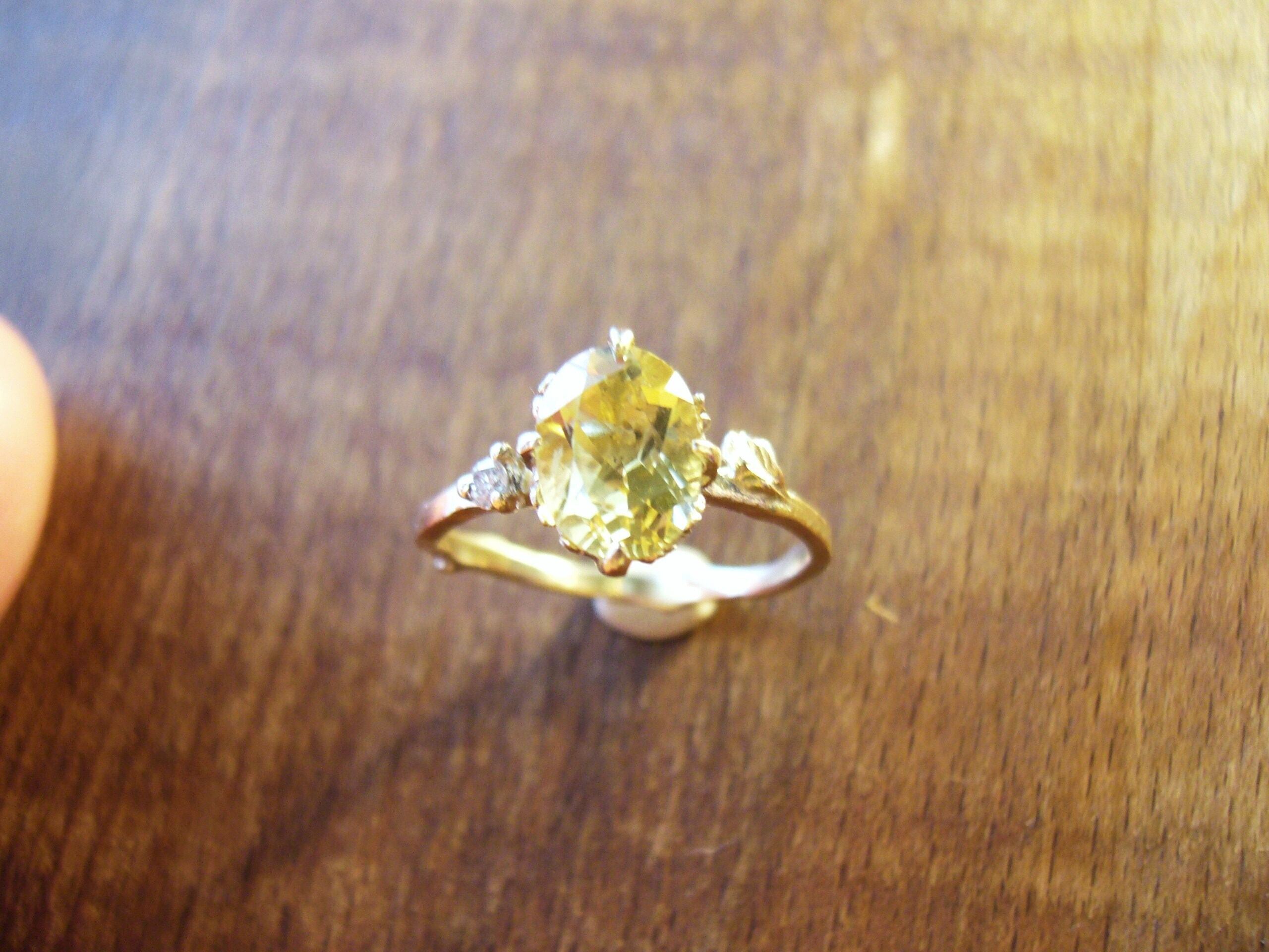 【使用石】シトリン (8×6mm) ダイヤ(0.8mm/0.025ct)