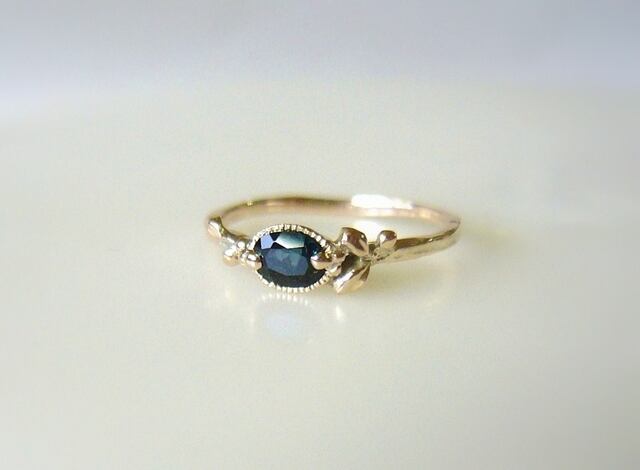 モザンビーク産天然非加熱インディゴライトブルートルマリンのK10のピンキーリングです。