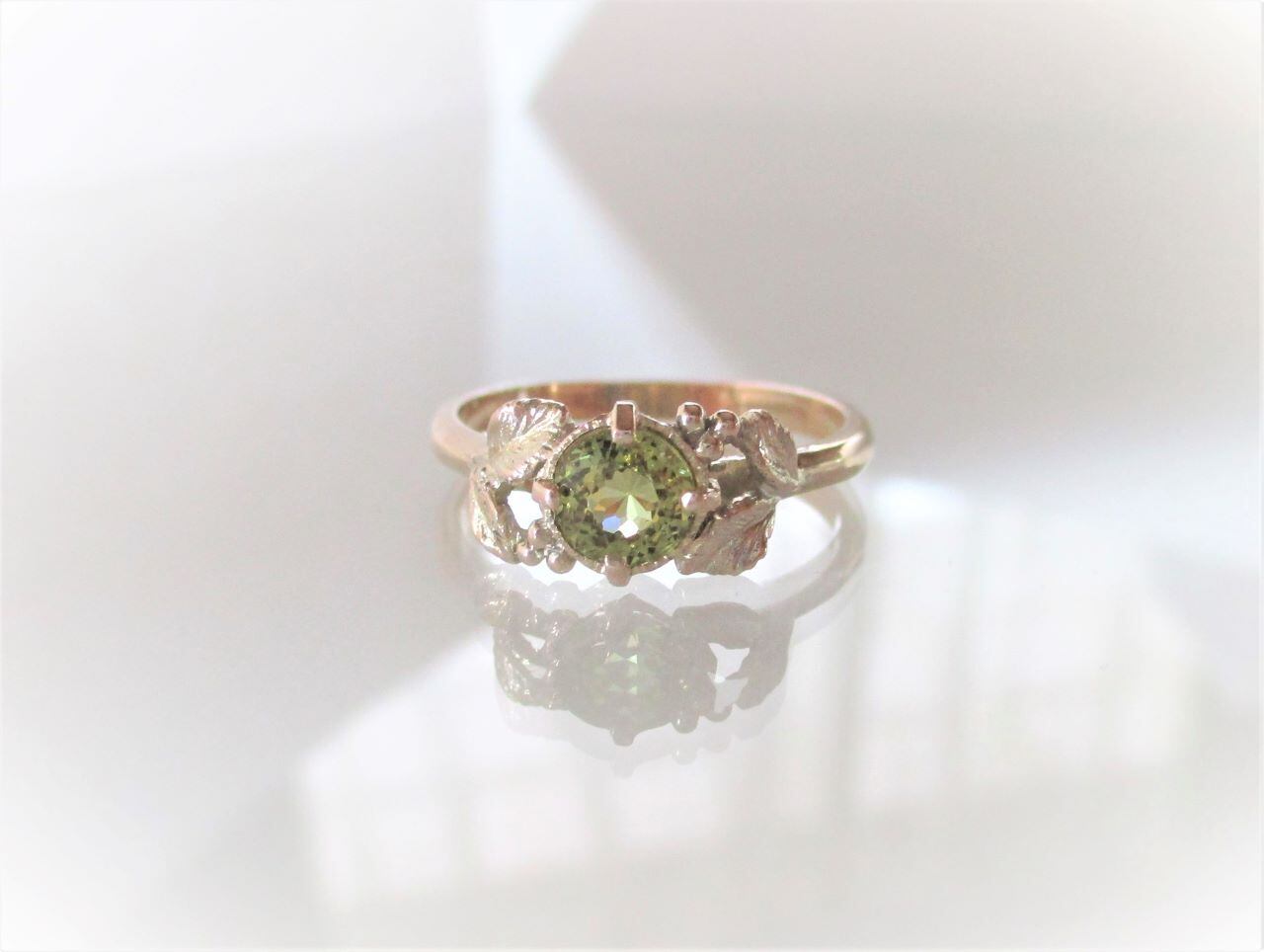 グロッシュラーガーネットのボタニカルリング(K10)