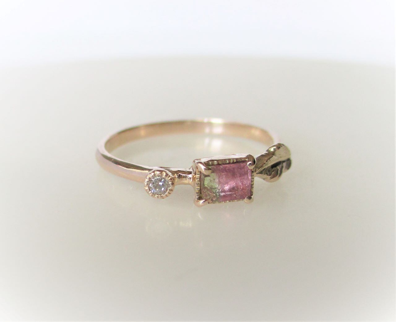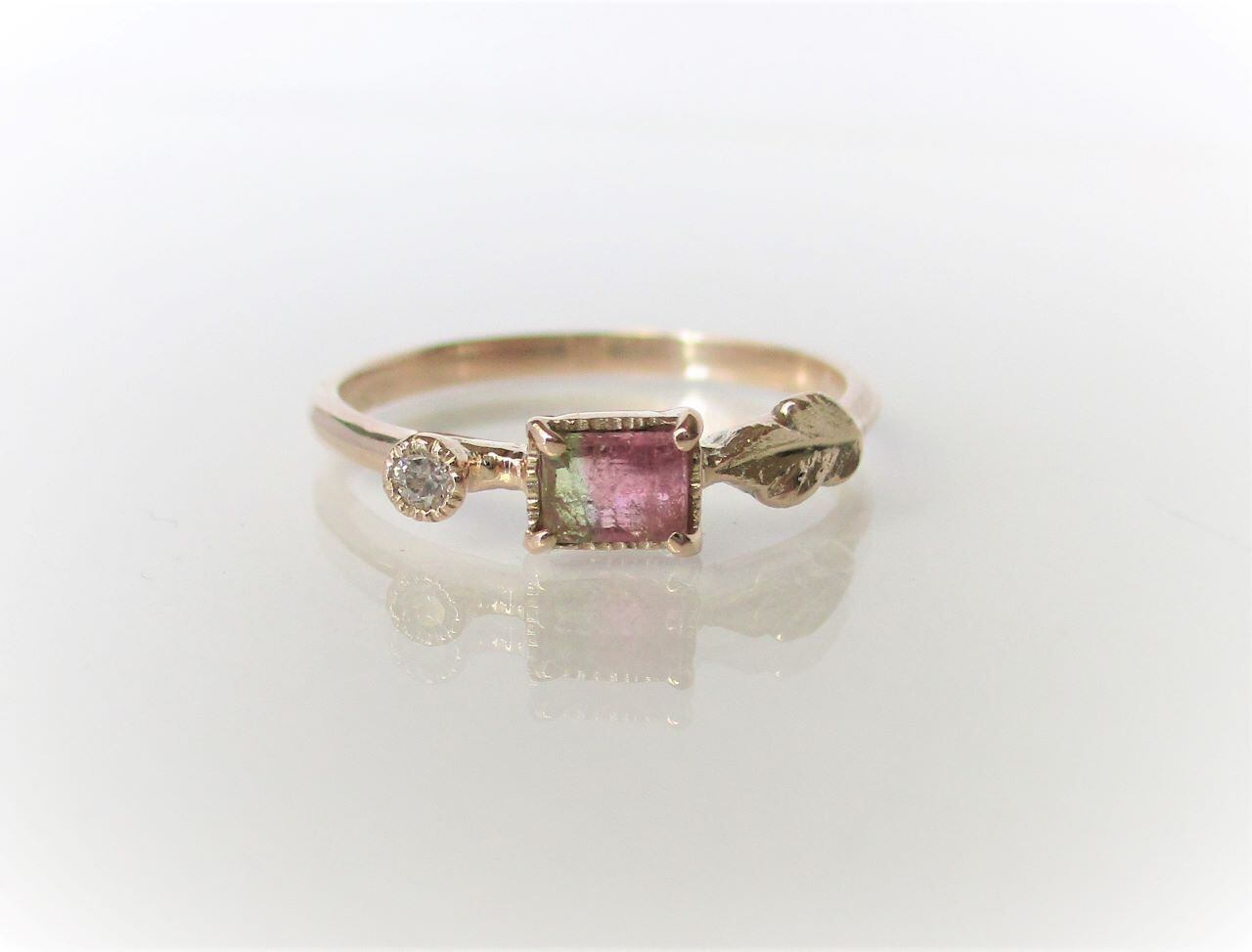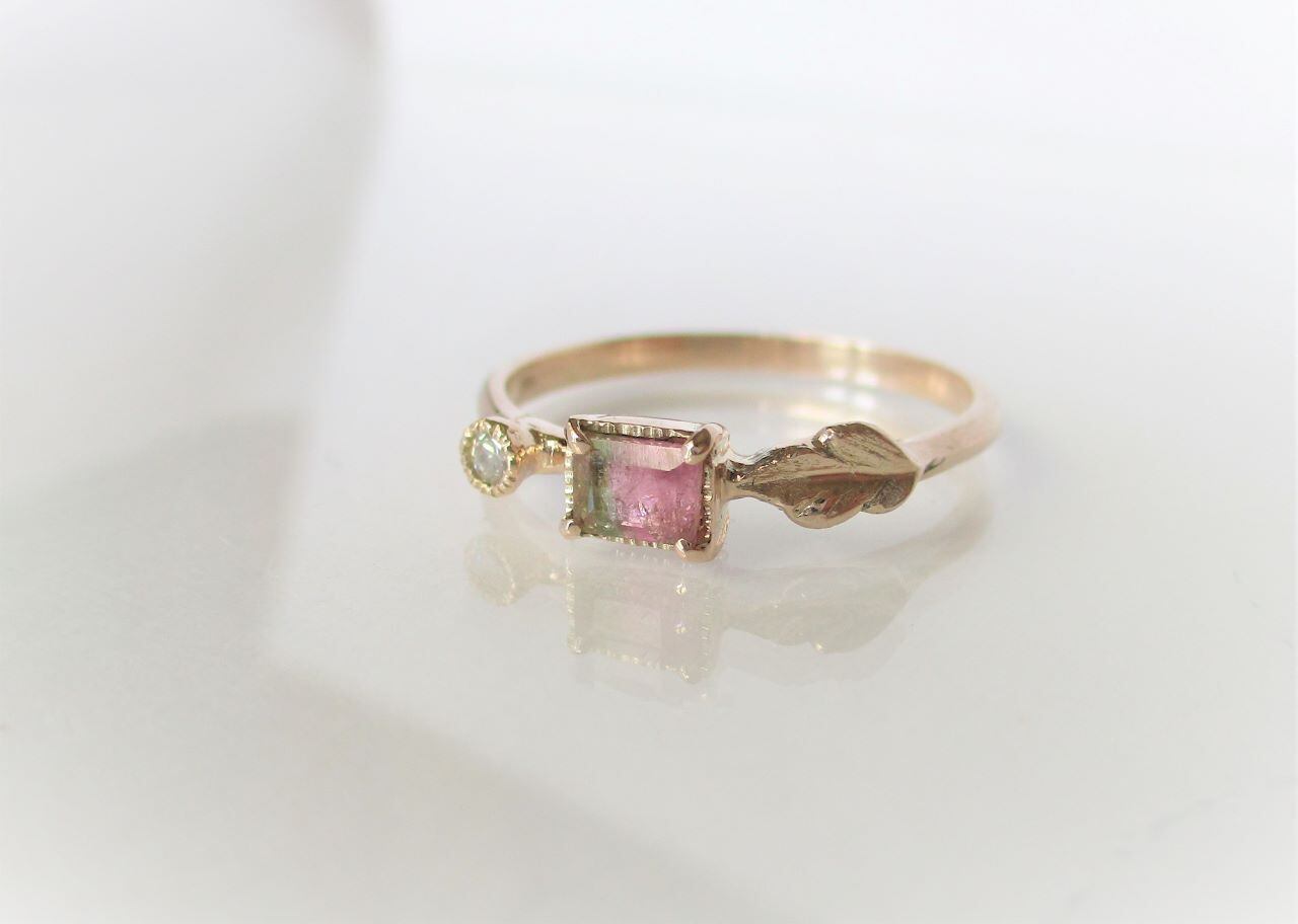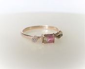 ウォーターメロントルマリンとダイヤのK10の指輪