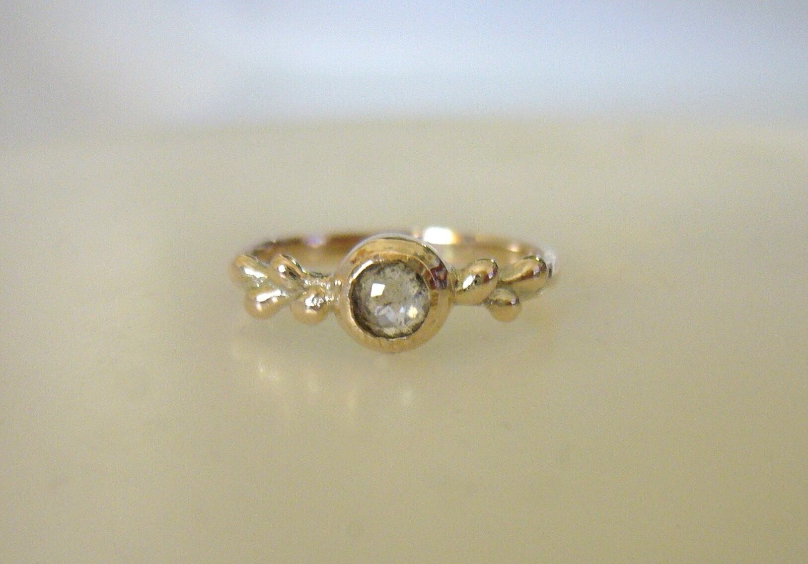 ナチュラルダイヤとリーフのピンキーリング(グレー)