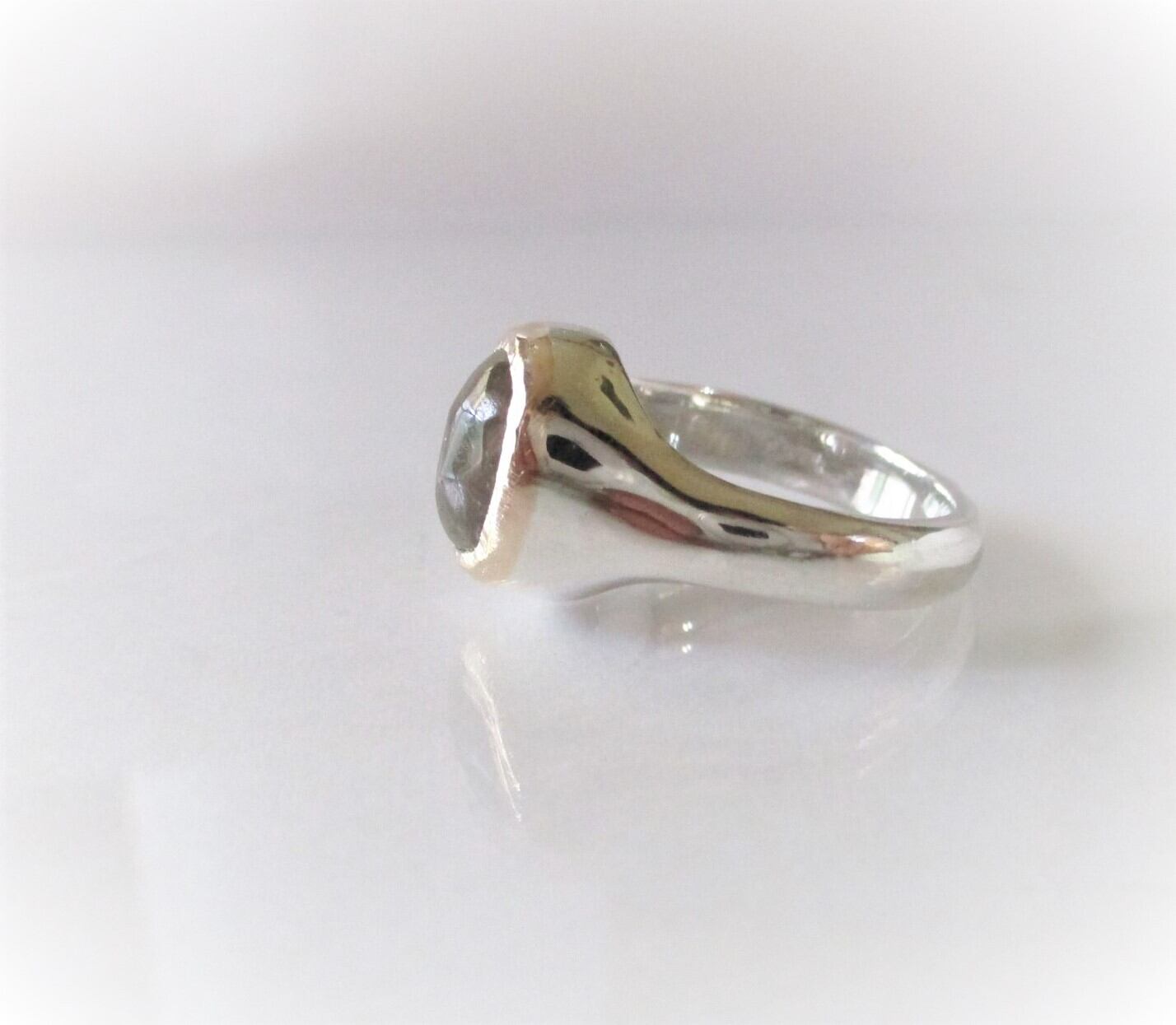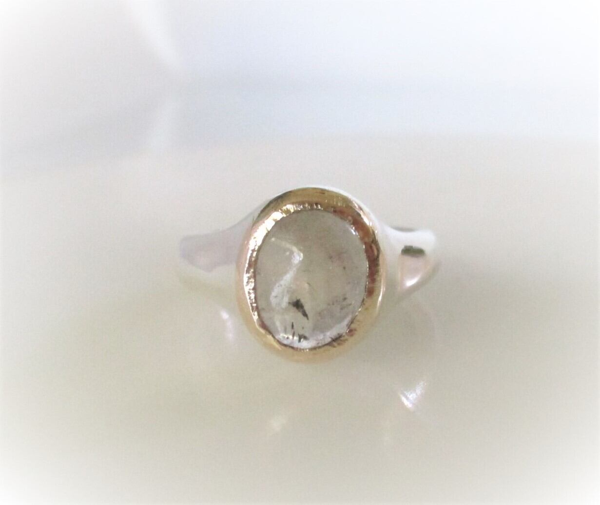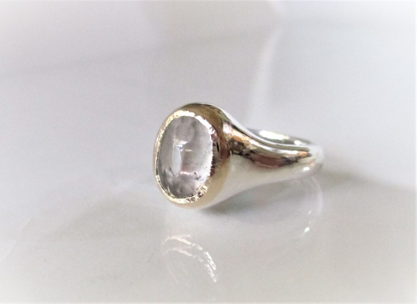 ベゼルにK10をローズ付けし、細かな槌目を入れてシルバーとのコントラストを楽しめる雰囲気にしてみました。