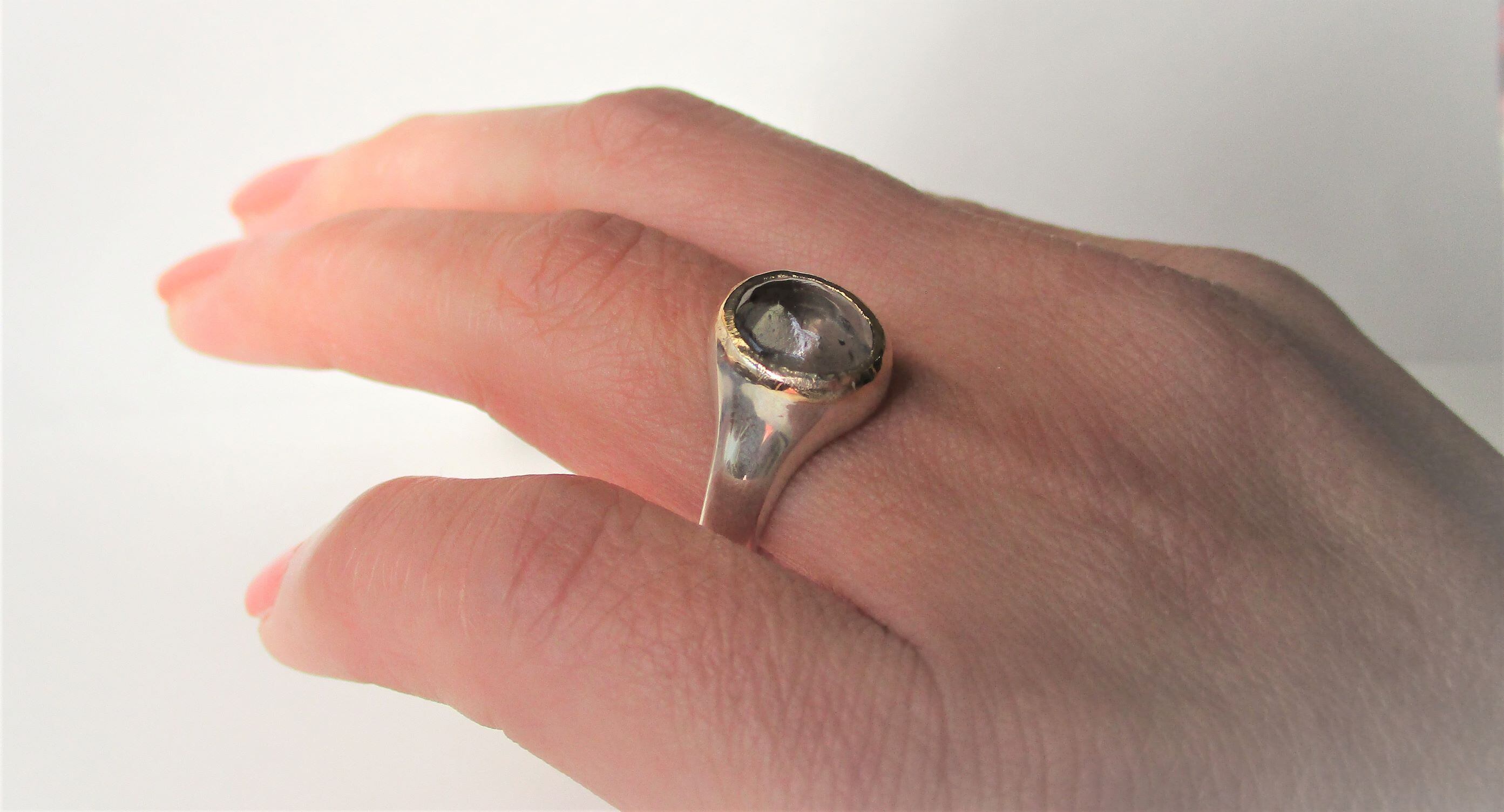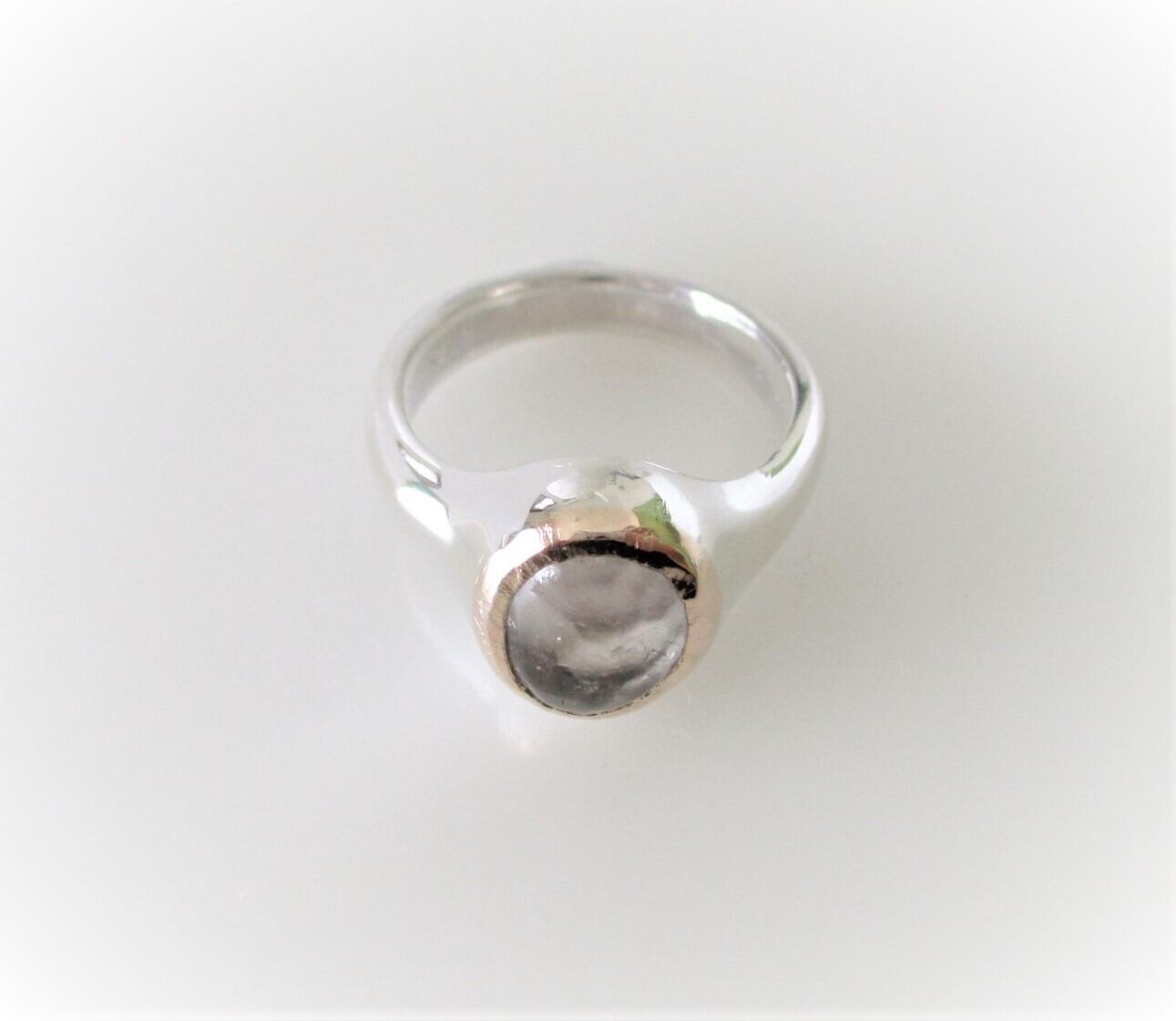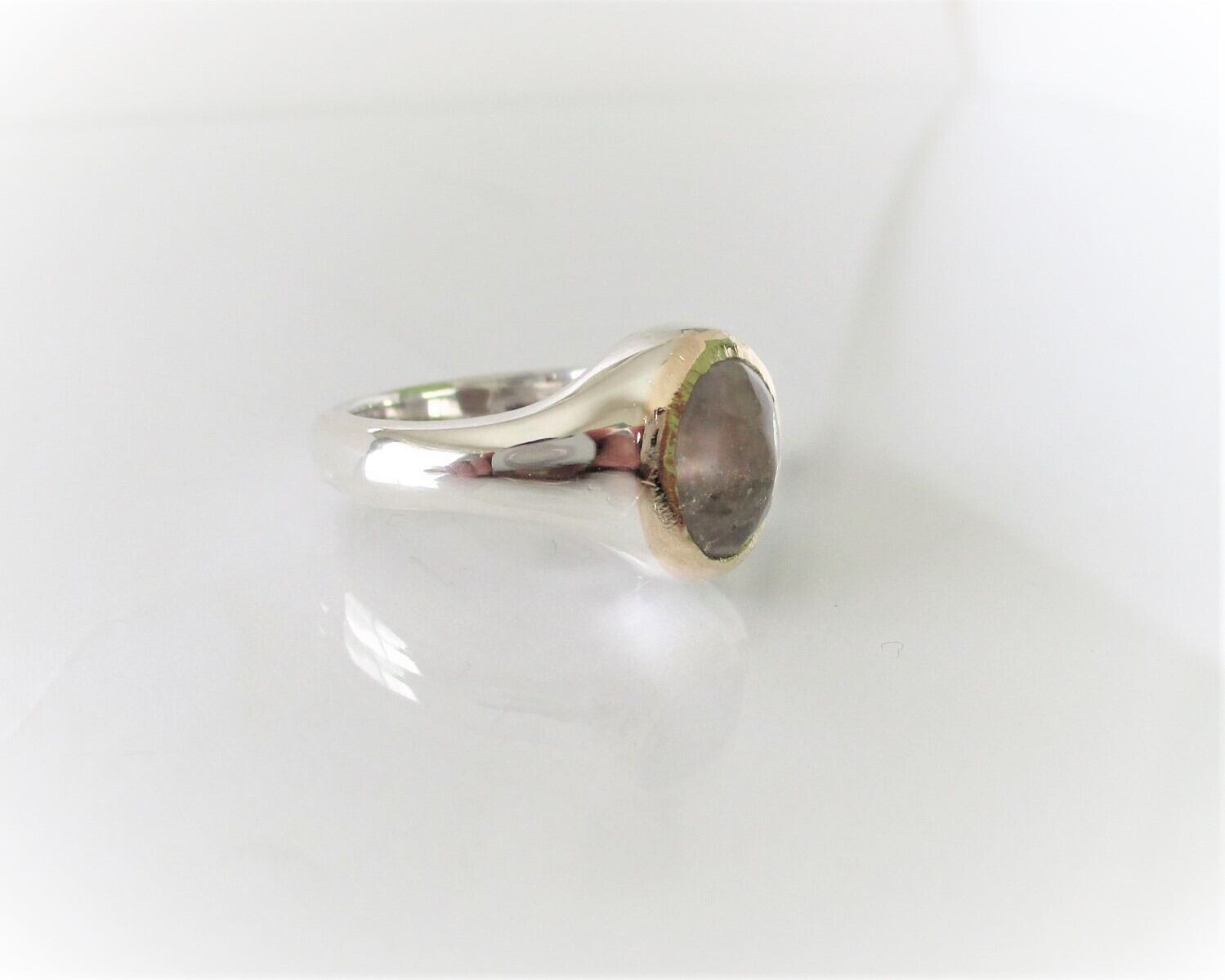 ベゼルにK10をローズ付けし、細かな槌目を入れてシルバーとのコントラストを楽しめる雰囲気にしてみました。