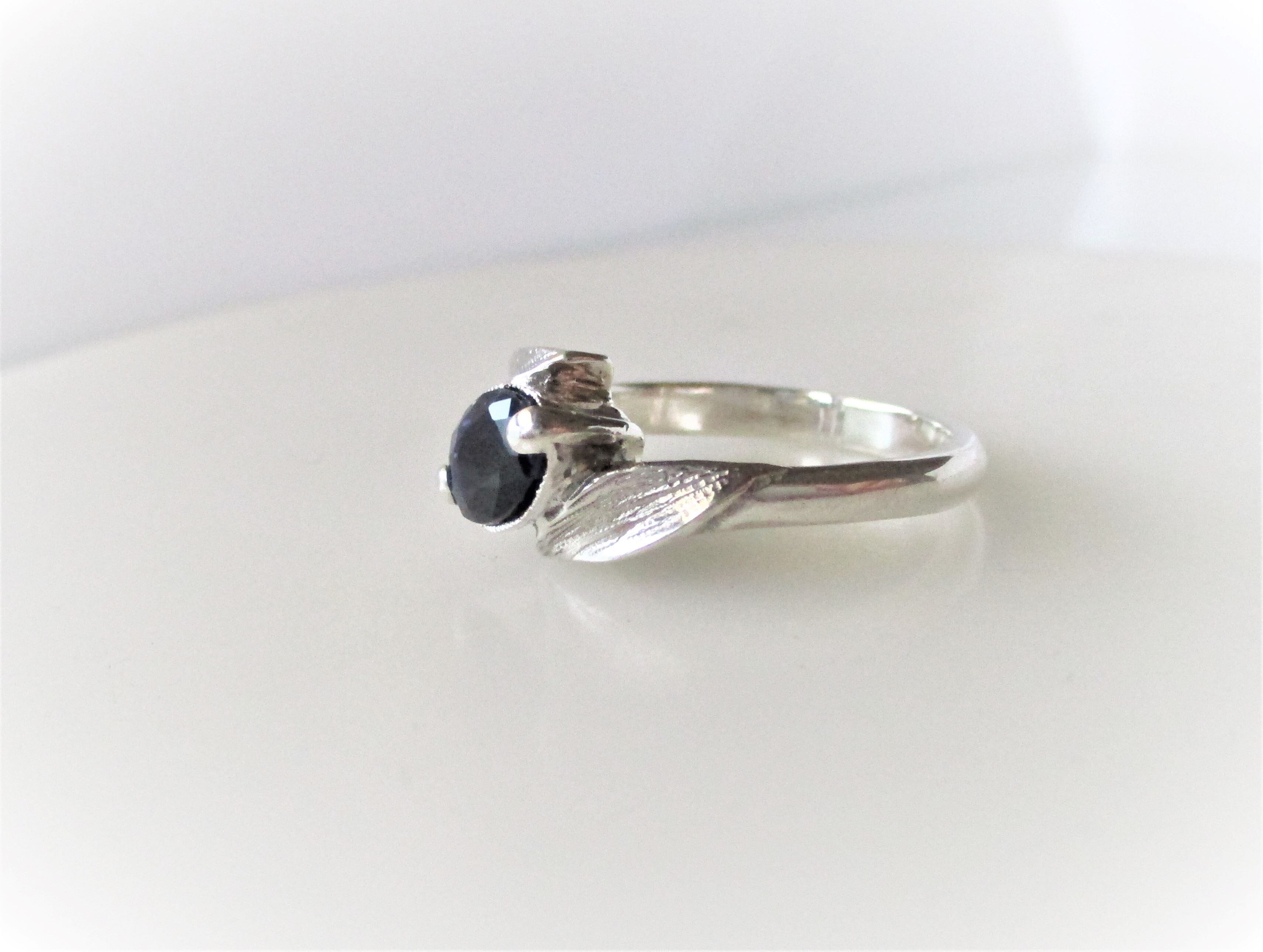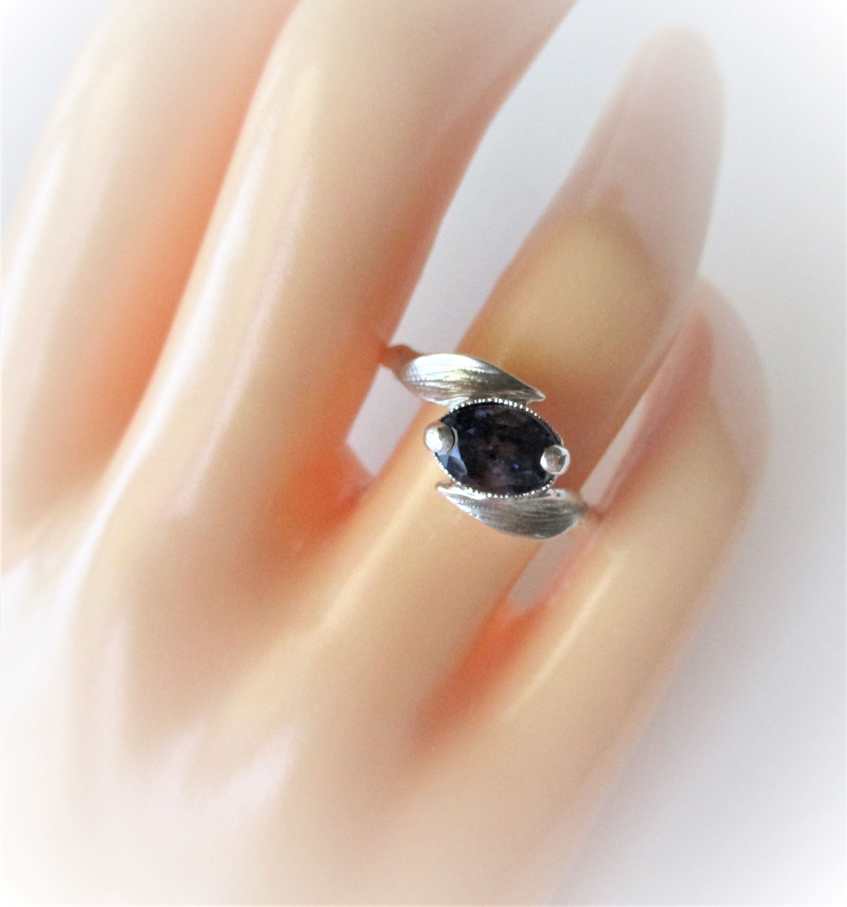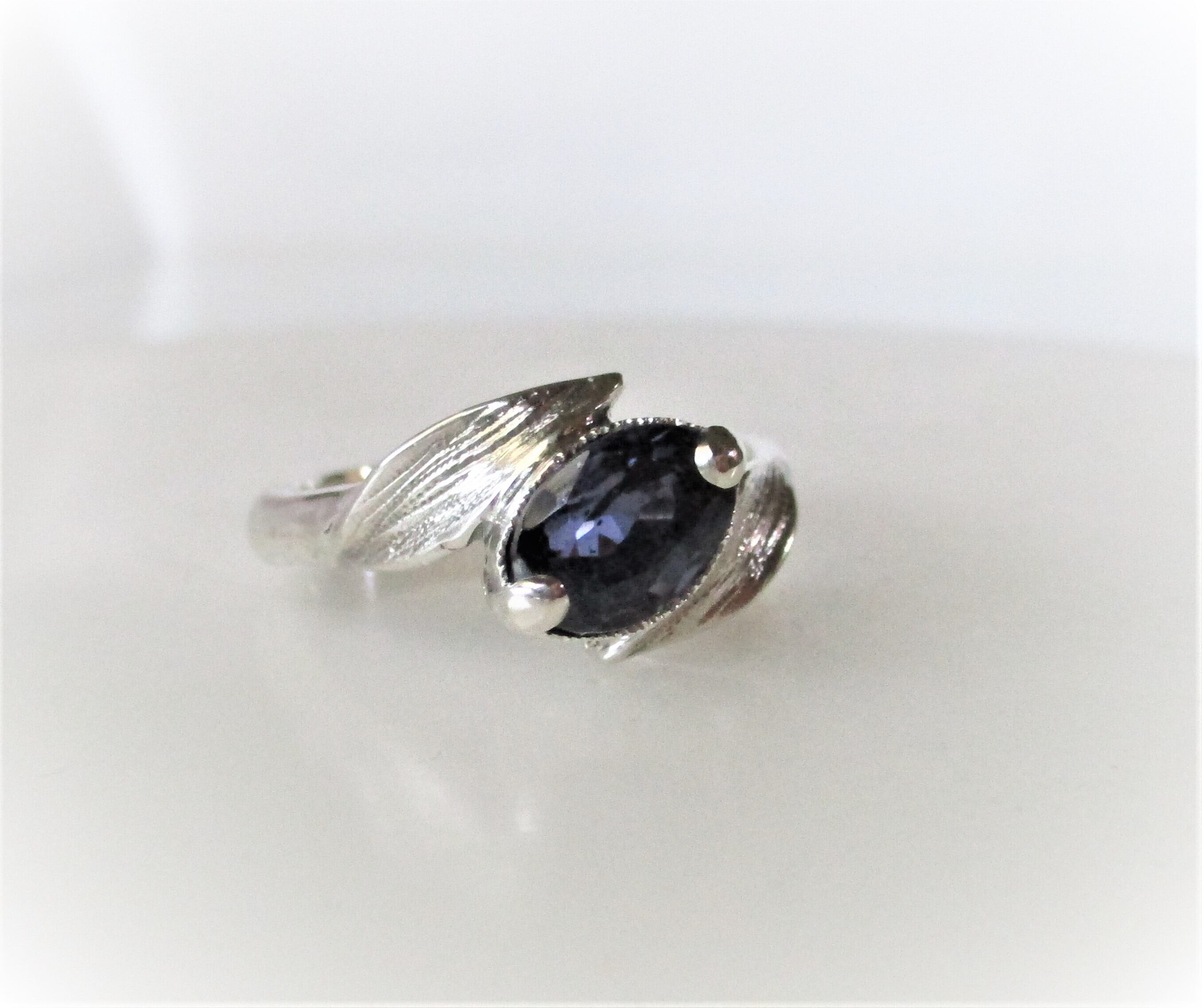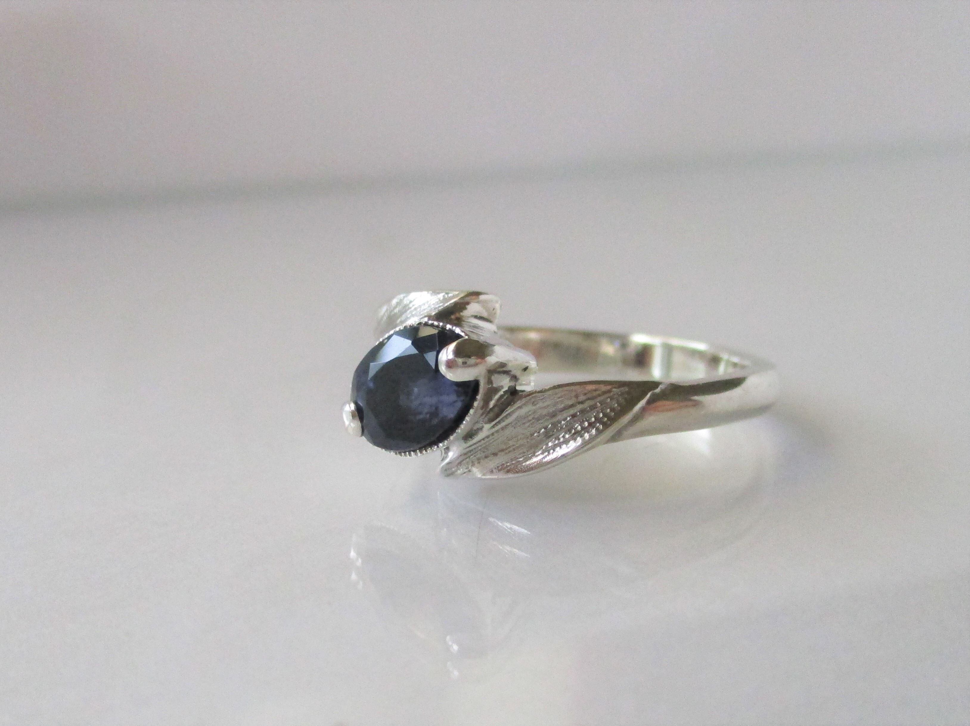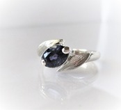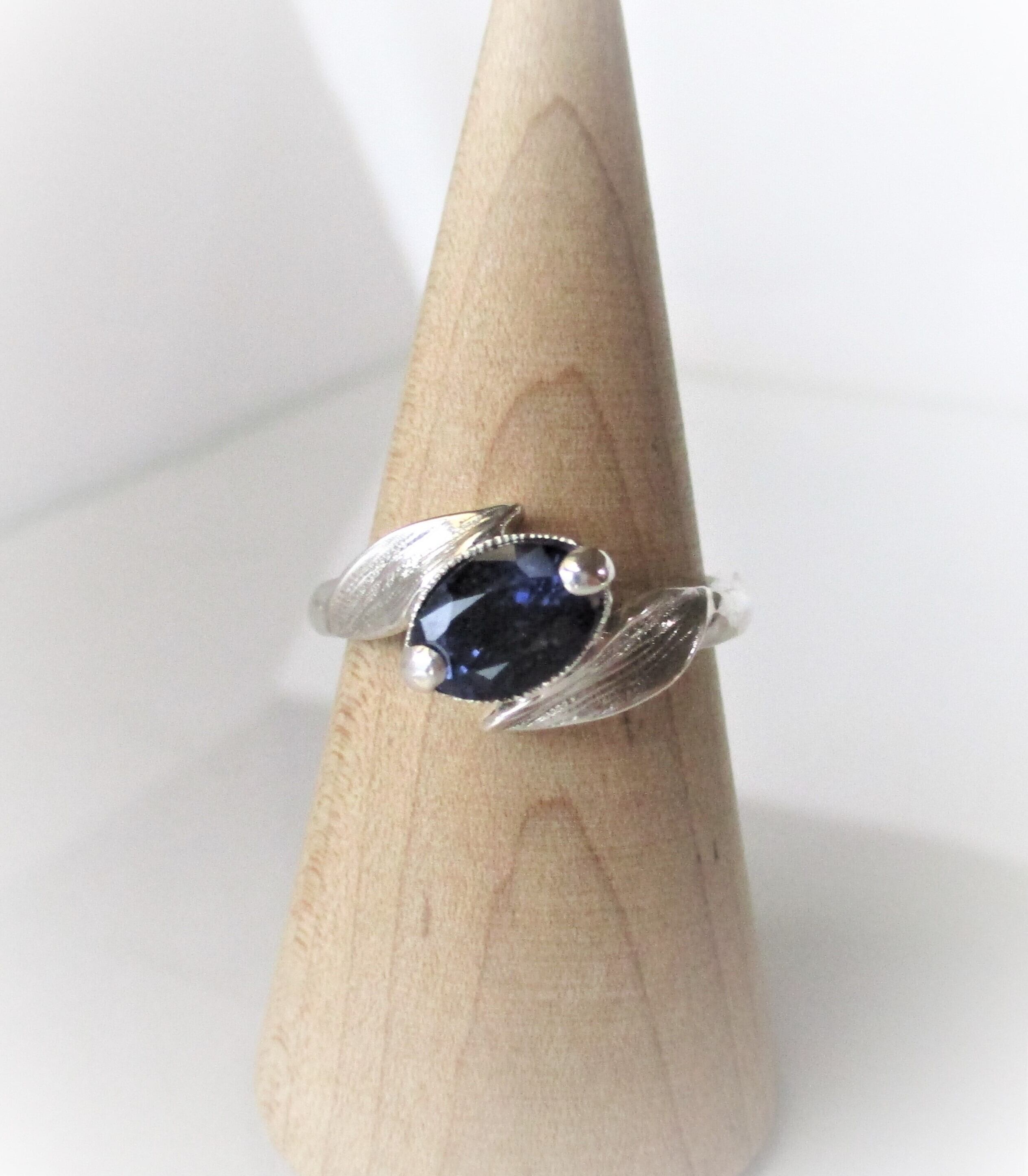 天然アイオライトとリーフの指輪