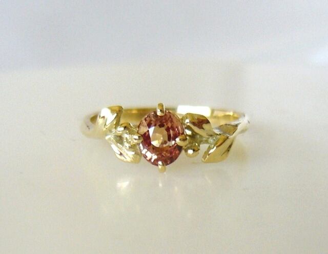 マラヤガーネットとリーフのK14の指輪
