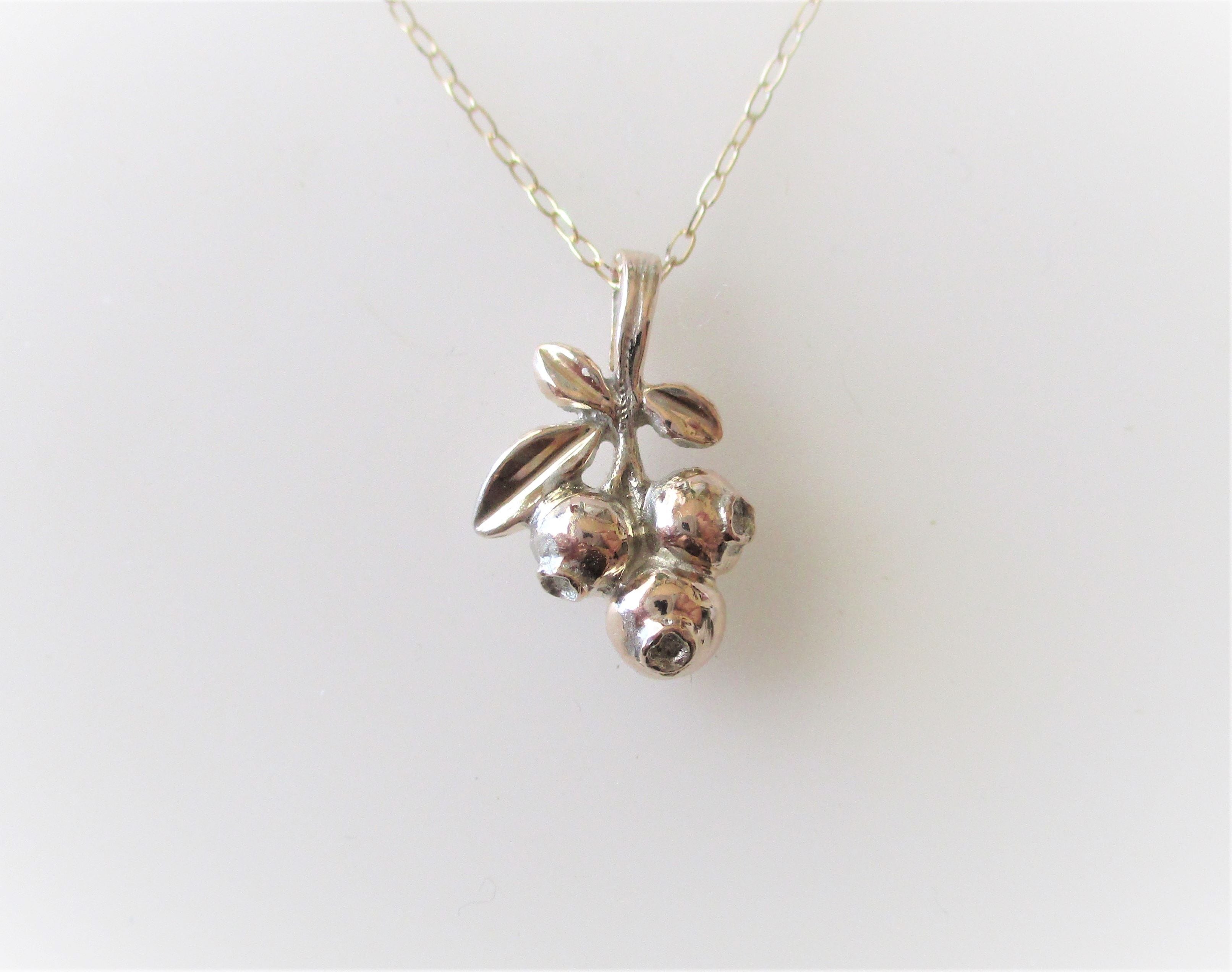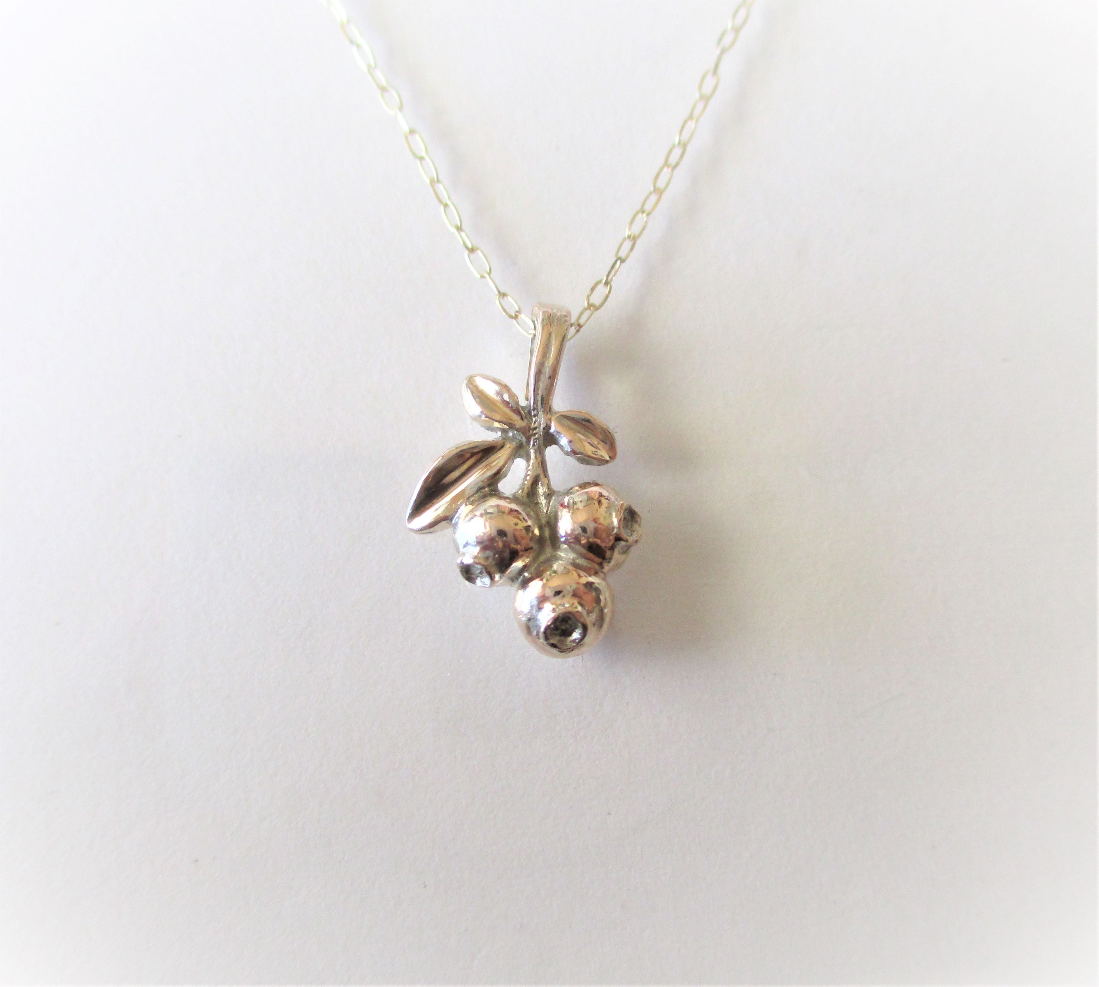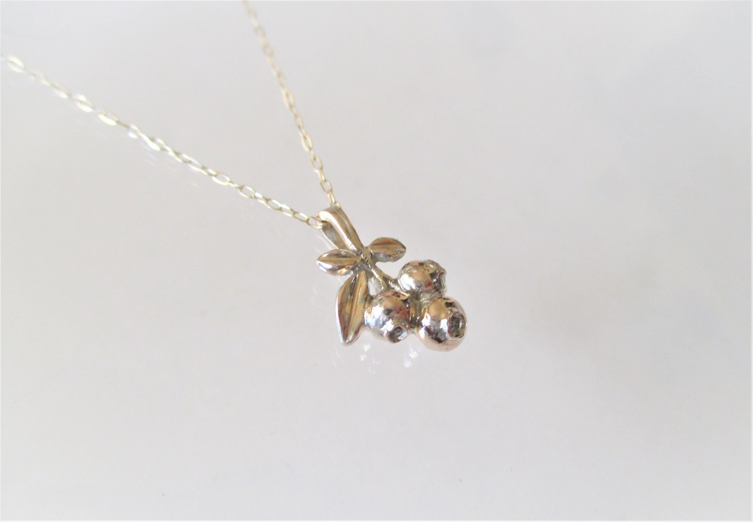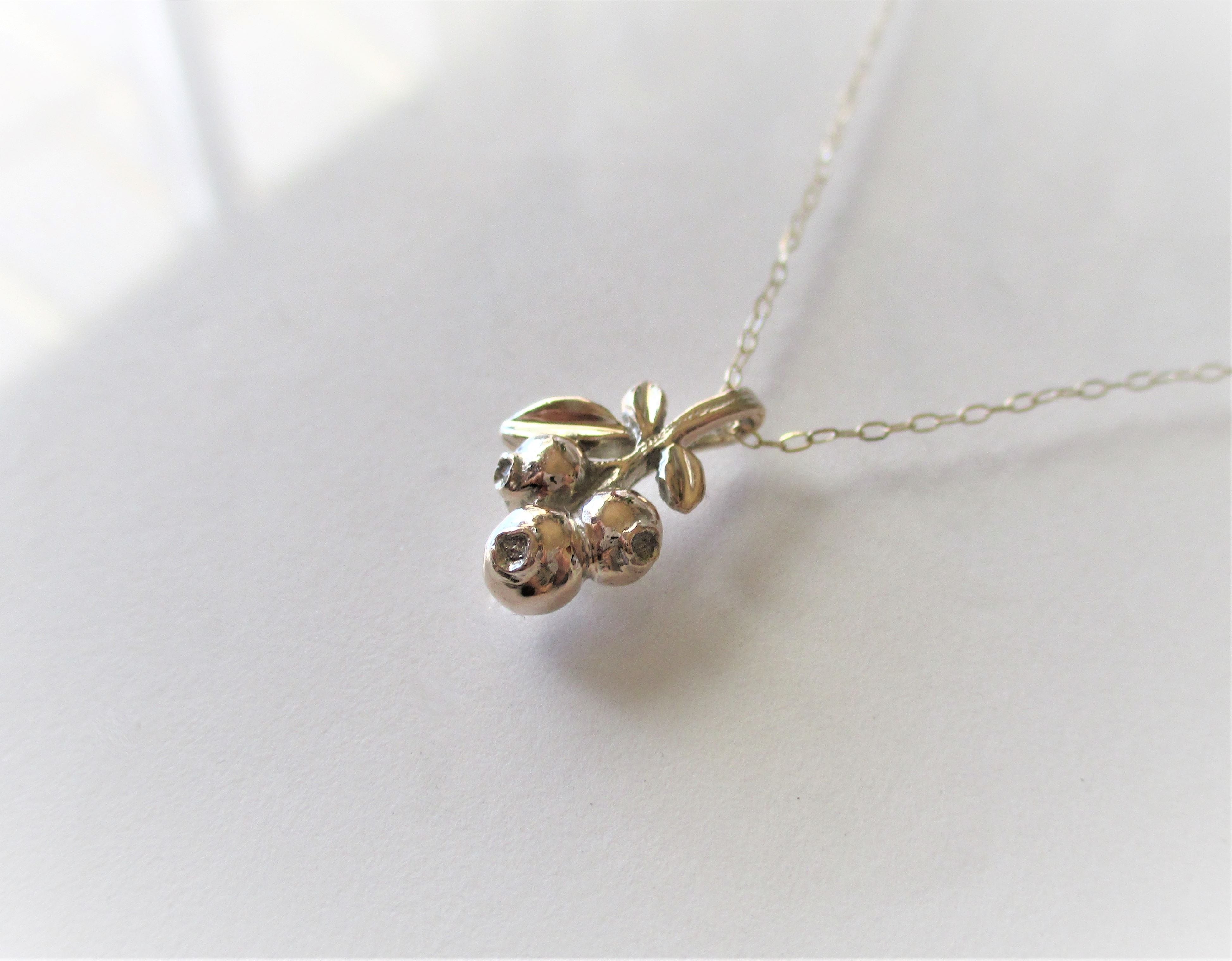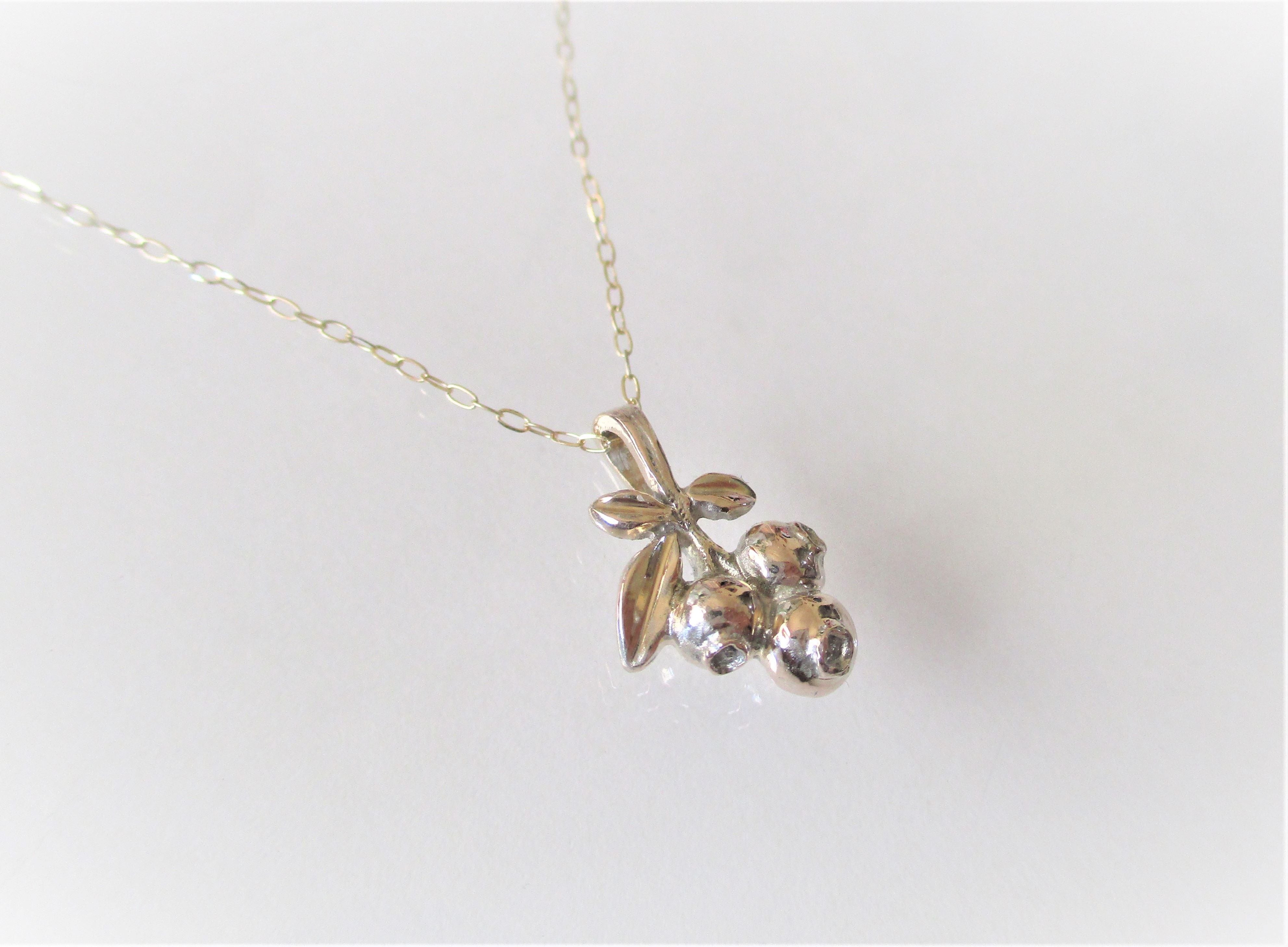 みずみずしい一房のブルーベリーをK10のペンダントにしてみました。