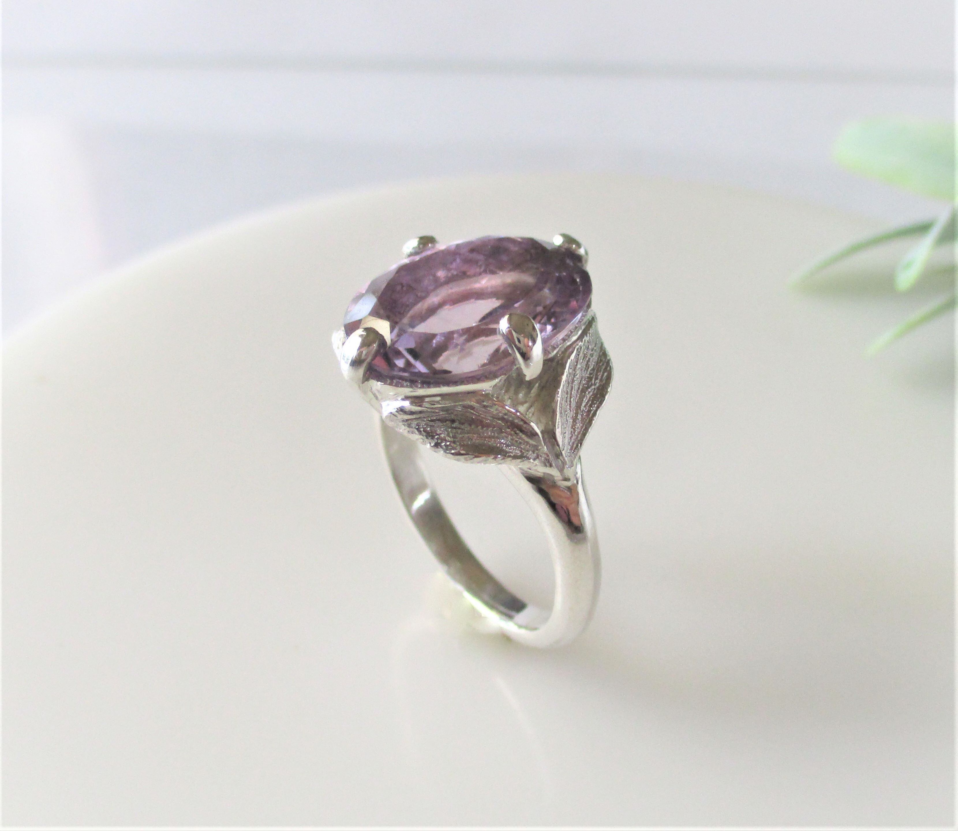 アメシストのボタニカルリング
