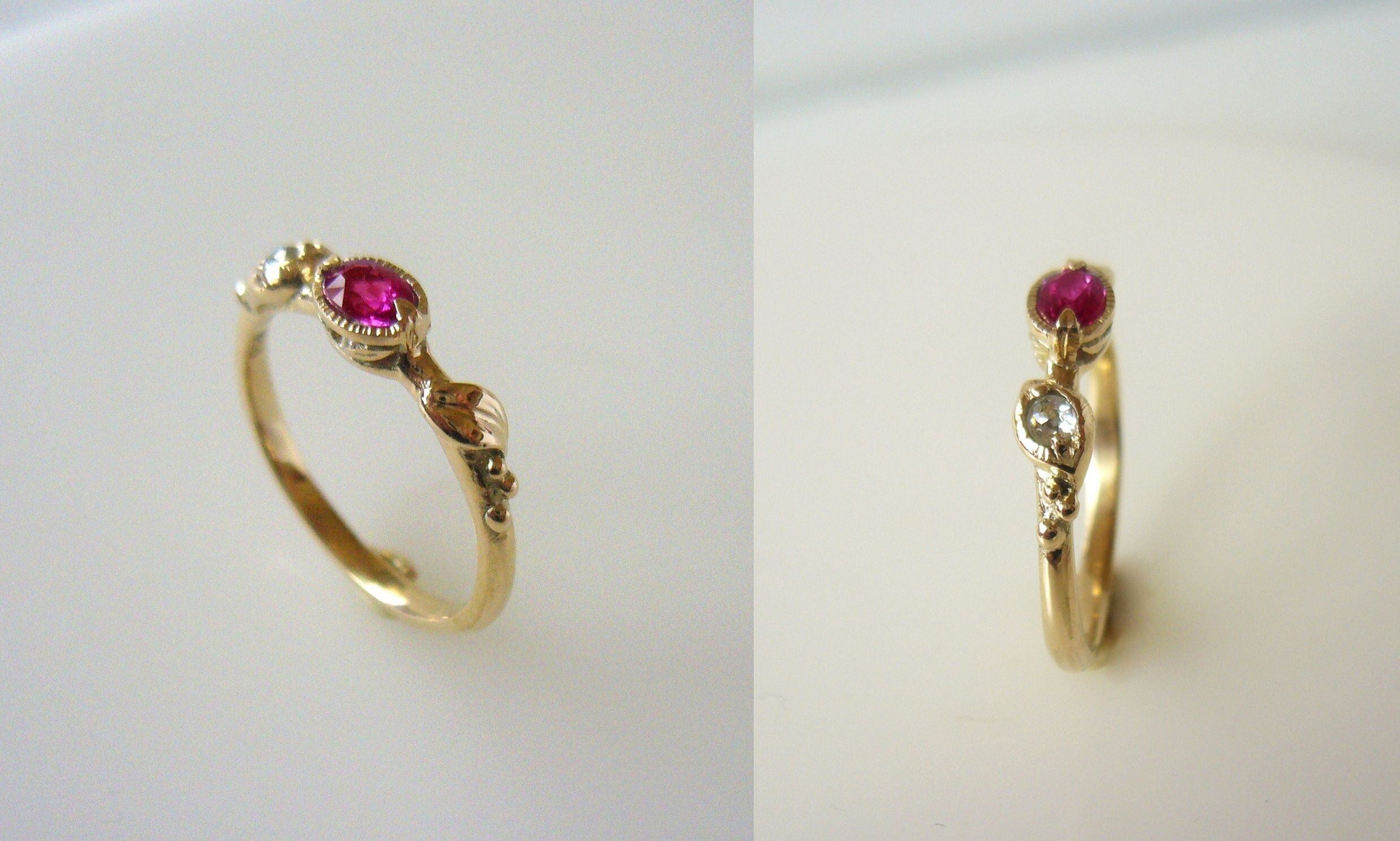 モザンビーク産ルビーとローズカットのナチュラルダイヤを使った指輪です。