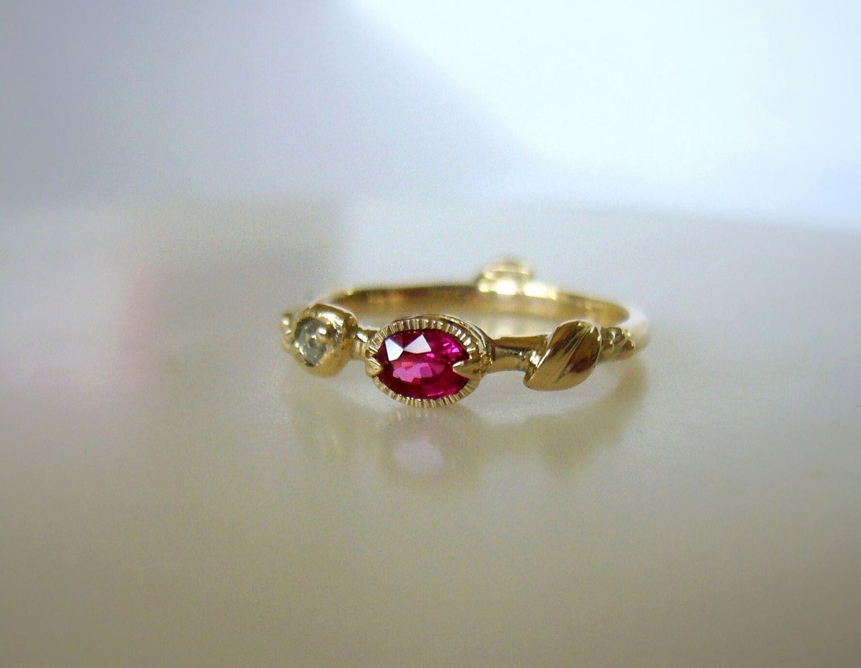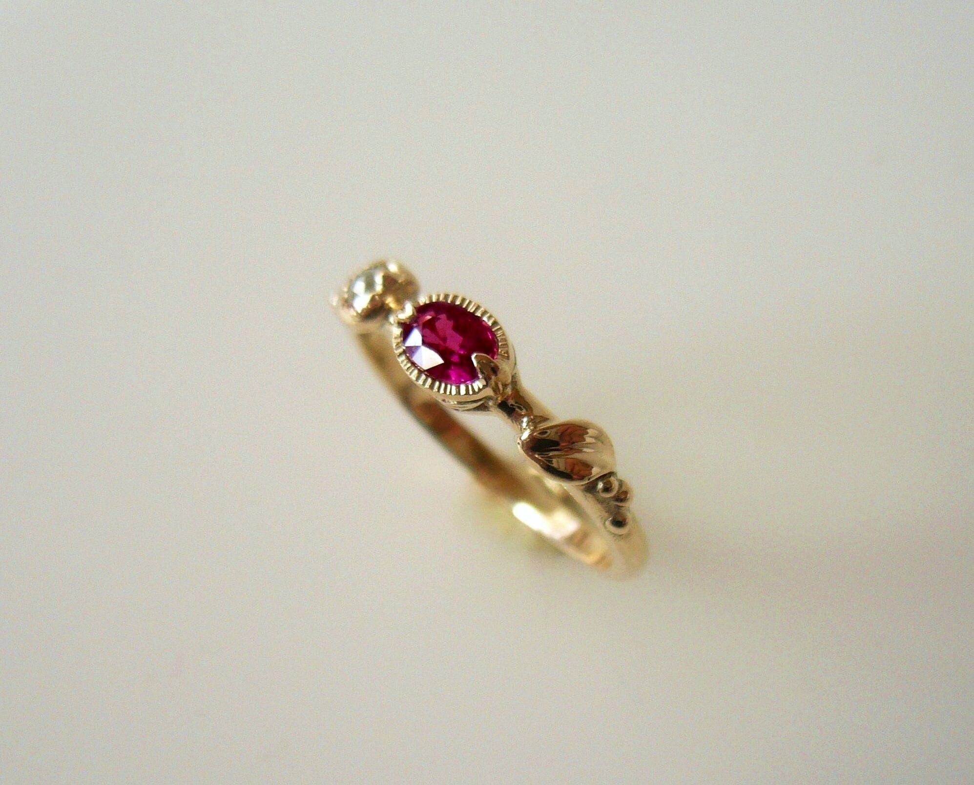 天然非加熱ルビーとナチュラルダイヤのK14の指輪