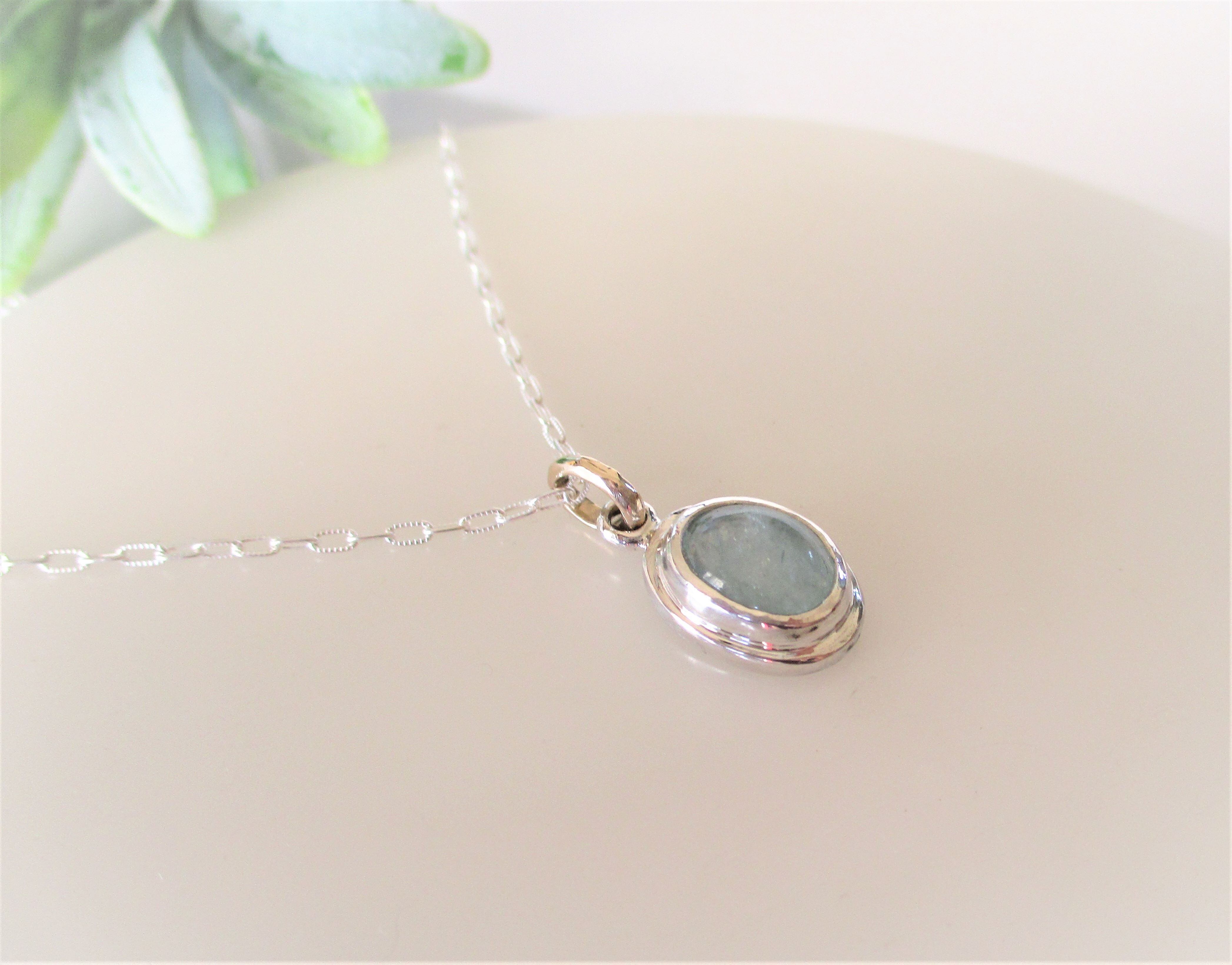 シンプルにスッキリとまとめたシルバーのペンダントフレームはK10のバチカンをポイントにしてゴールドとシルバーとアクアブルーのコントラストを楽しめる雰囲気にまとめてみました。