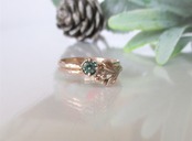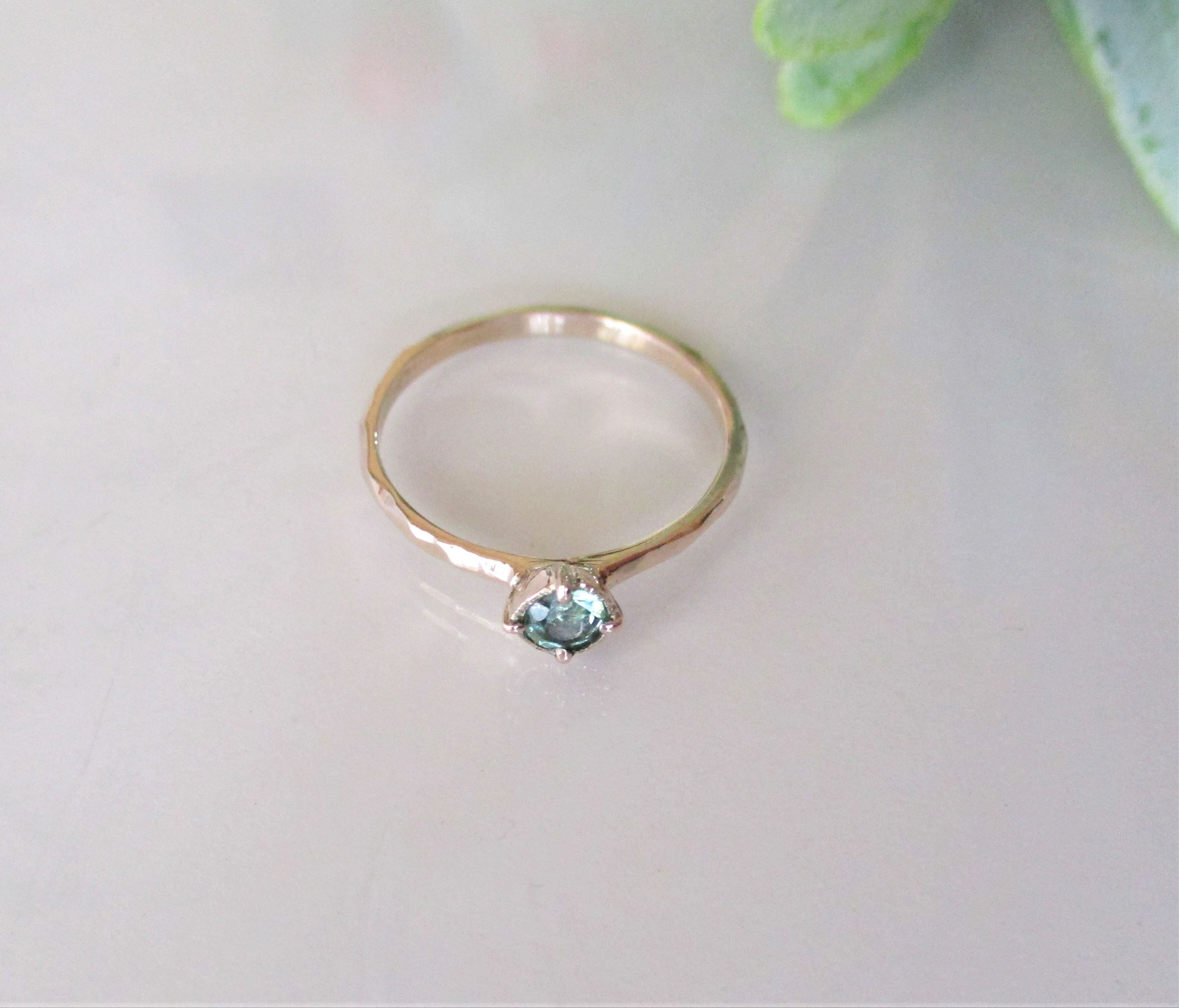 槌目を打ったK10のリングフレームは石の周りに細かな刻みを入れ十字の爪で石を留めました。