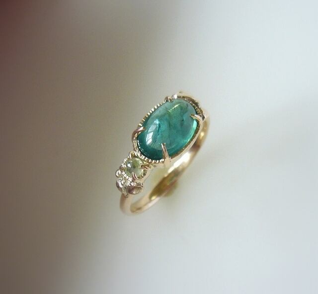 ブラジル産天然グリーンアパタイトを使ったK10の指輪です。
