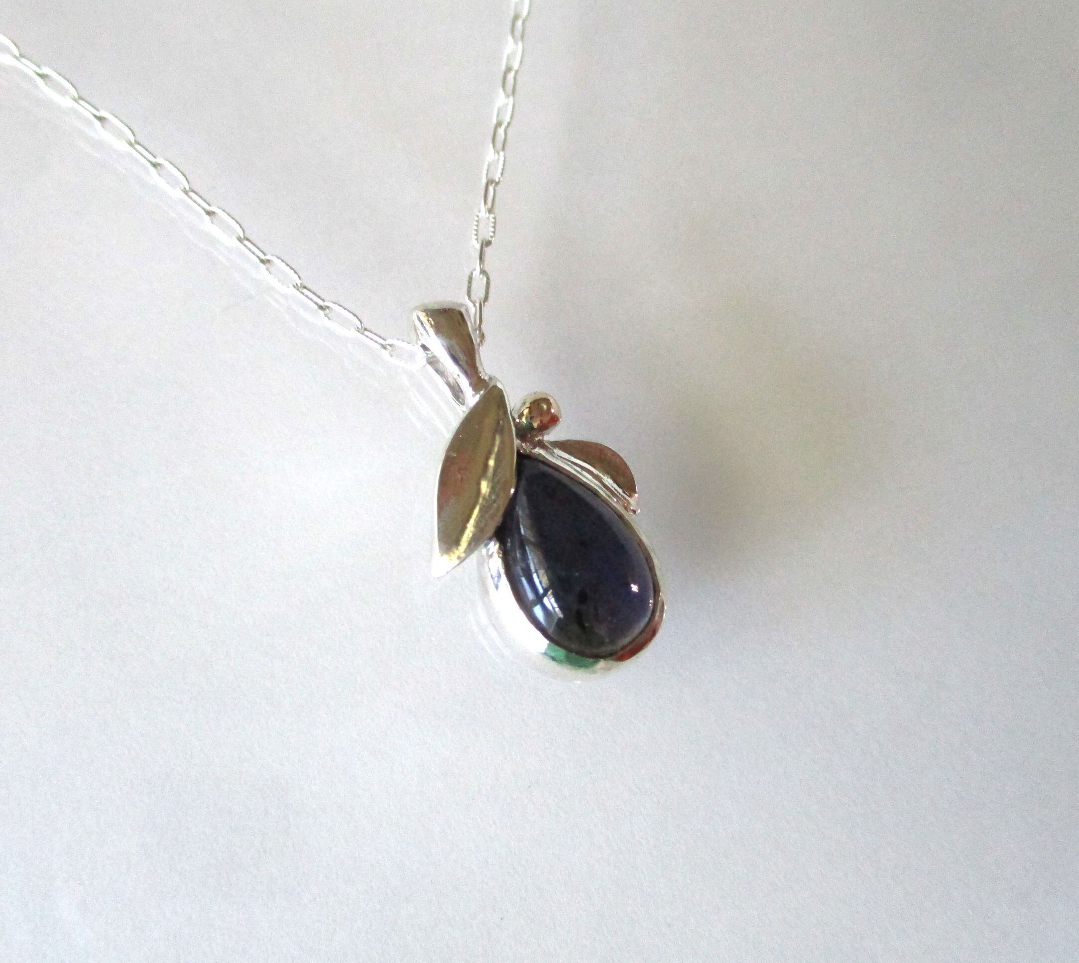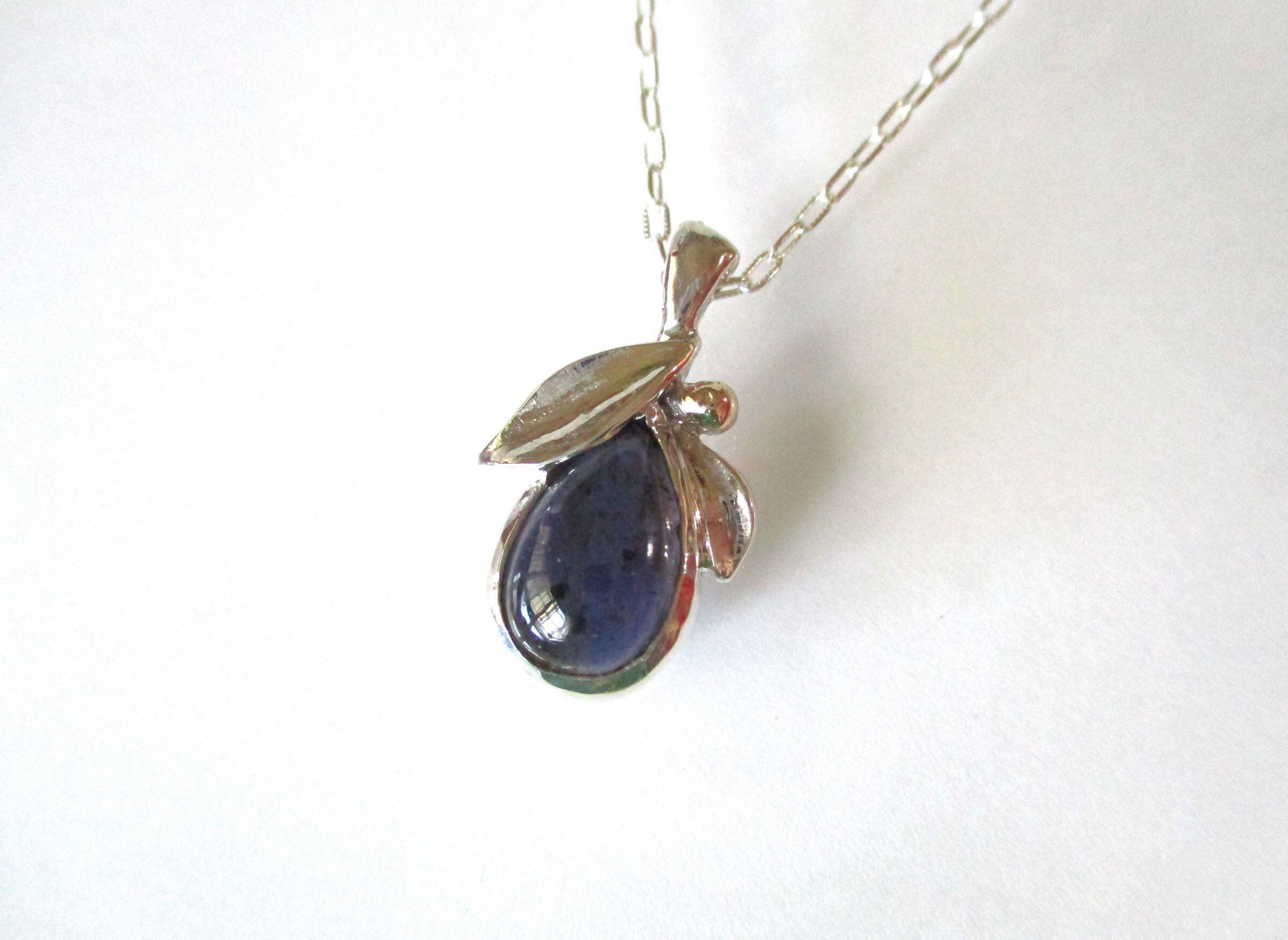 アイオライトと植物のペンダント
