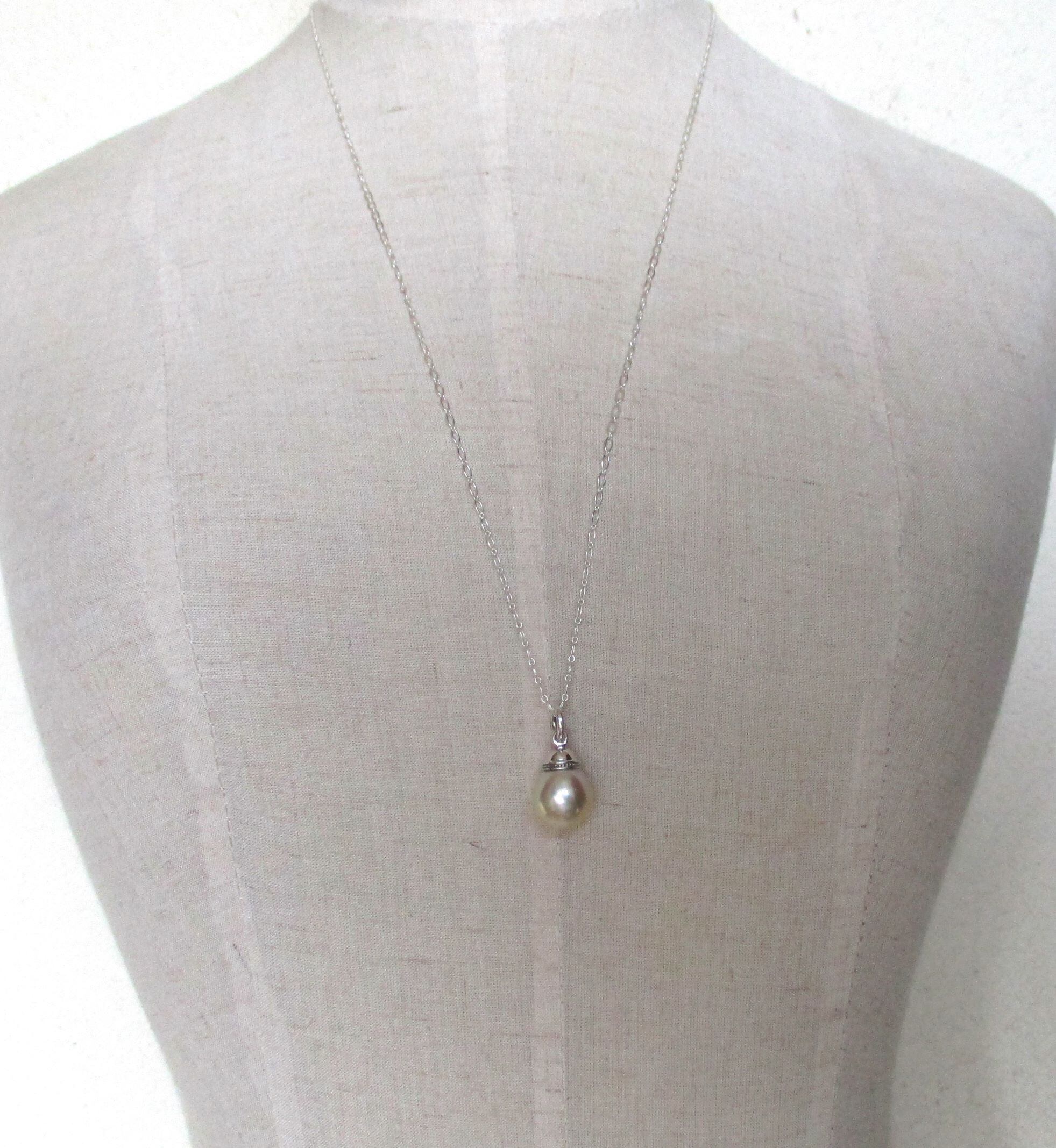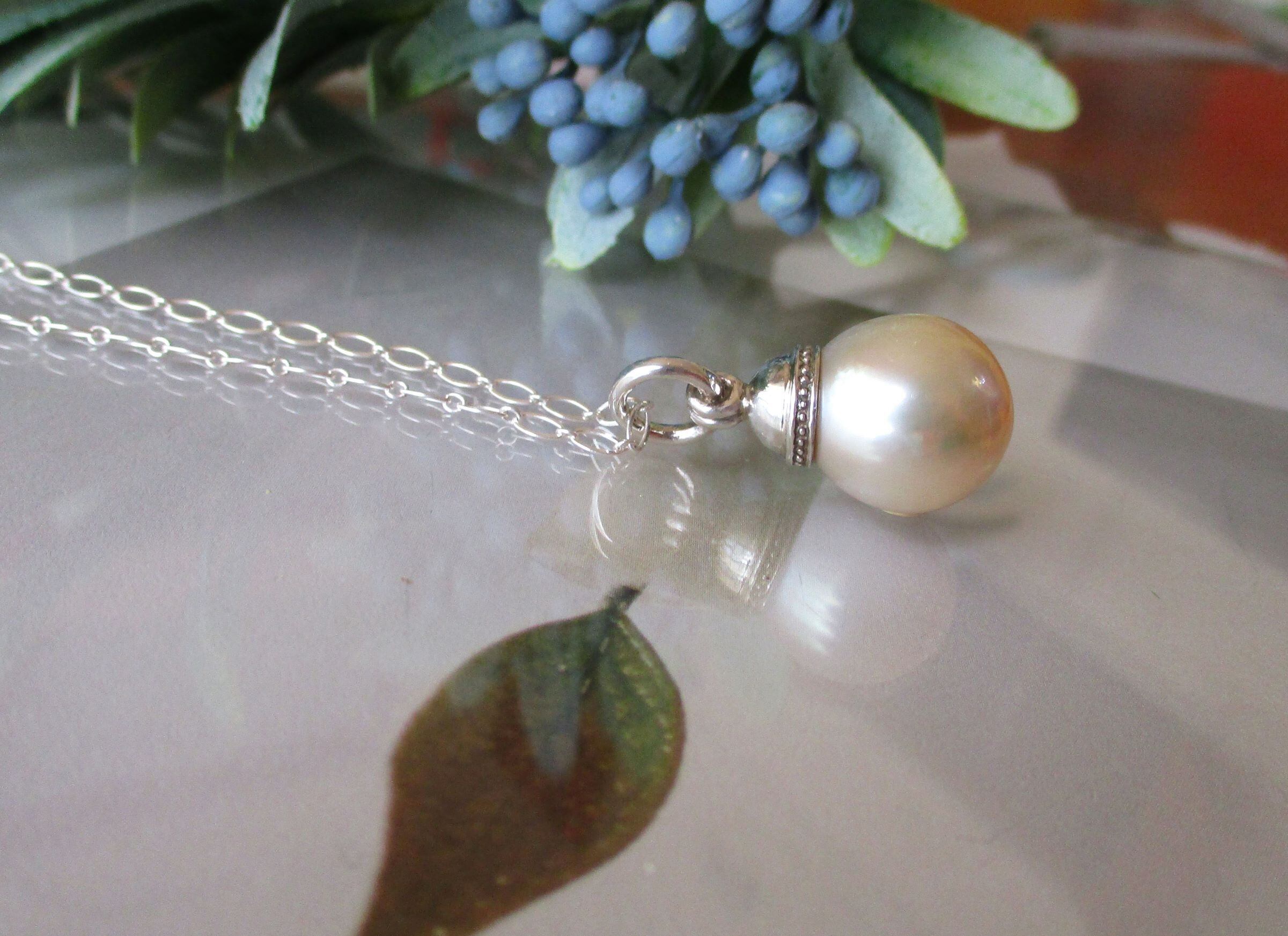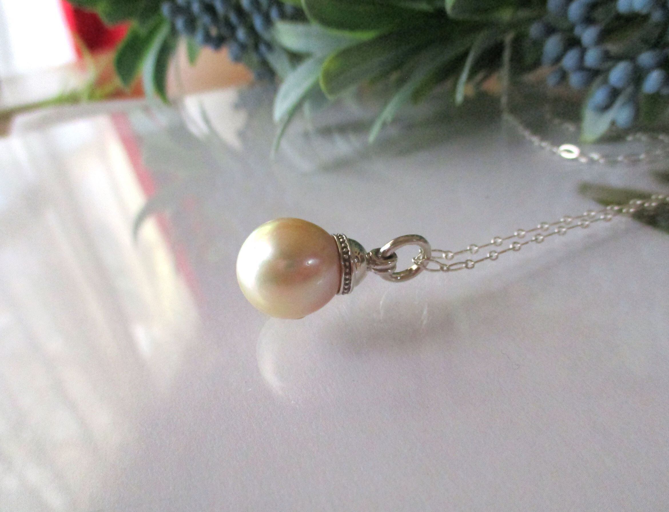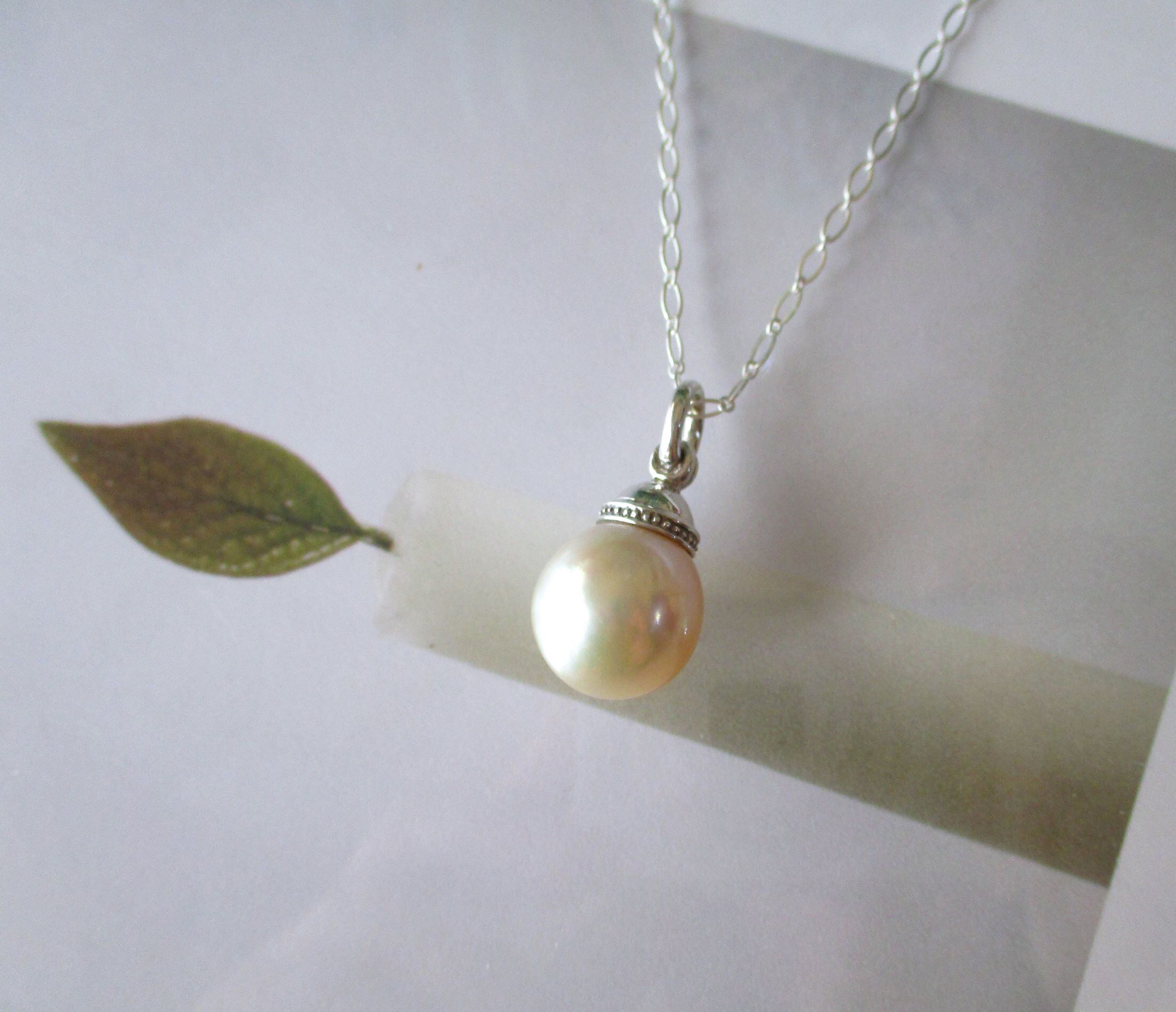 キラキラと光りに映える70cmのシルバーチェーンで、とてもお洒落に季節を問わずつけて頂ける真珠のペンダントです。