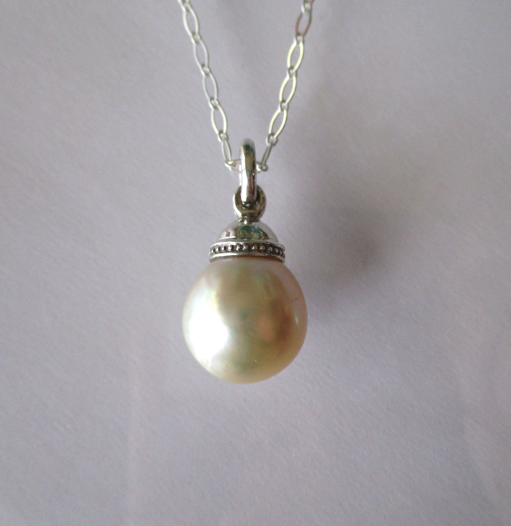 約14mm強の大きめの変形南洋パールを使ったシルバーのペンダントです。